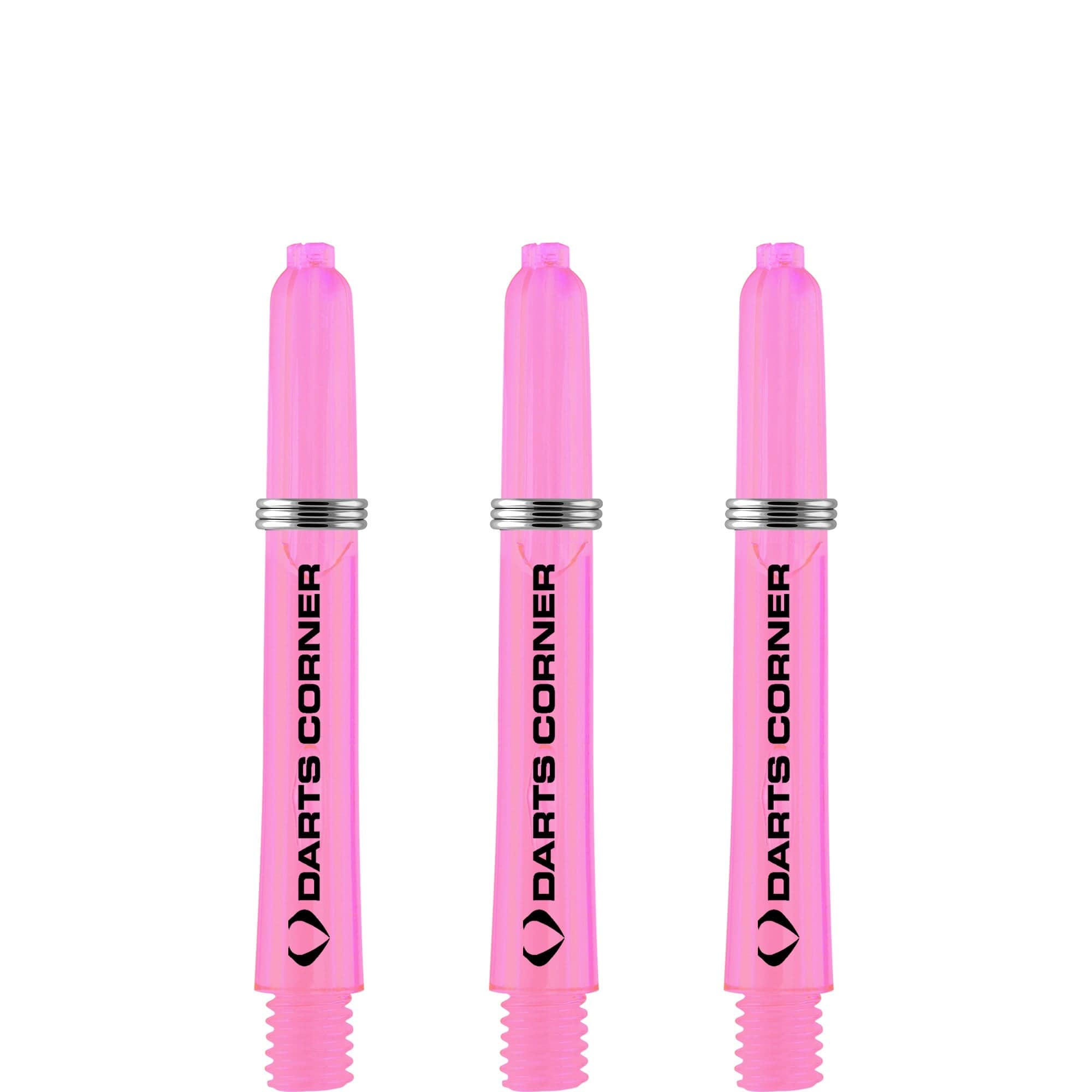 Darts Corner Polycarbonate Shafts - Strong Vibrant Polymer Shafts. Includes Springs. Length: 35mm; (does not include thread - 5mm) Thread: 2ba Darts Corner Polycarbonate Shafts - Dart Stems - Pink - Short-S1114 Gorgeous colours, tough stem, perfect to match your flights with
