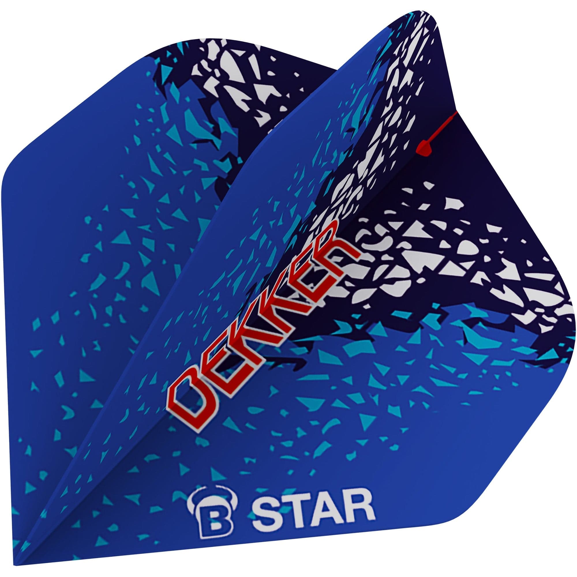 BULL'S B-Star Dart Flights - 100 Micron - A-Std - Jan Dekker - F4223. This flight is made from the most popular 100 Micron material, in the B-Star Flight series in standard A-Shape. This is the official flight of Jan Dekker with a blue design. Each pack contains 3 flights.