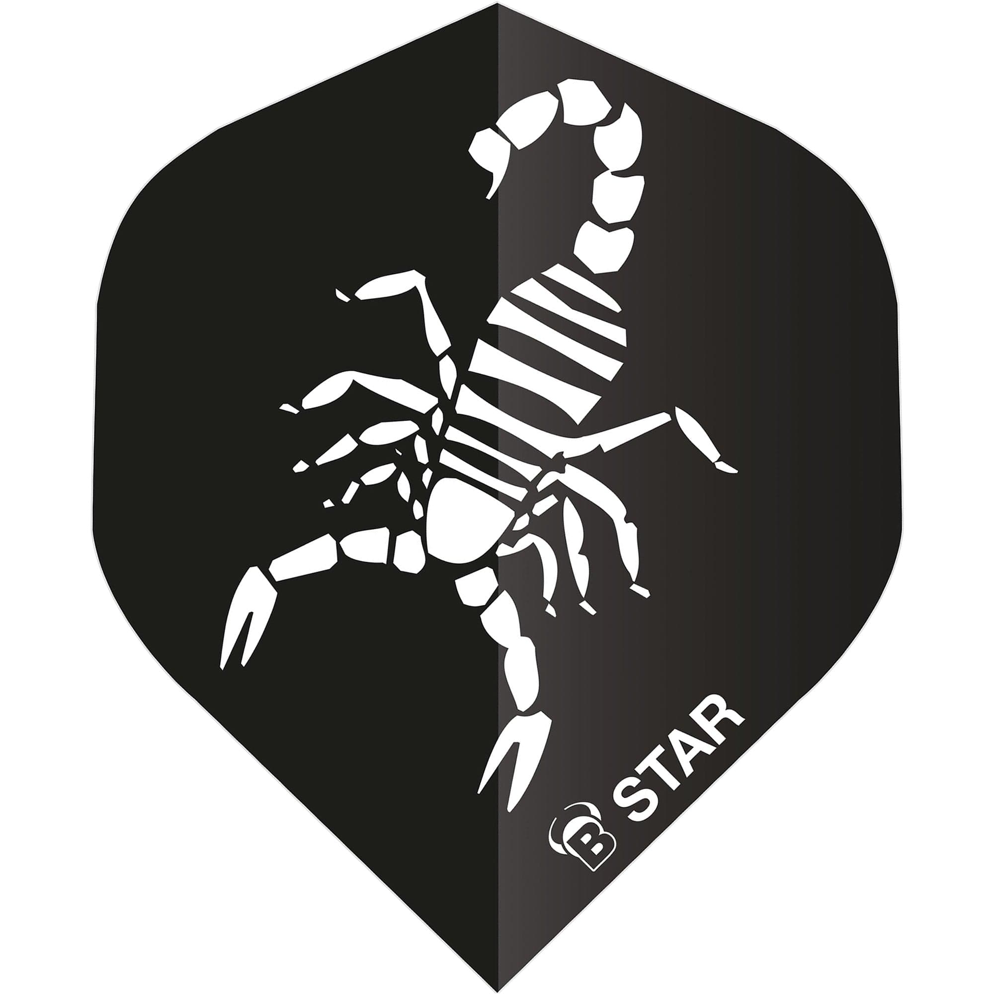 BULL'S B-Star Dart Flights - 100 Micron - A-Std - Scorpion - Black - F4221. This flight is made from the most popular 100 Micron material, in the B-Star Flight series in standard A-Shape. This design features a scorpion image on a black background. Each pack contains 3 flights.