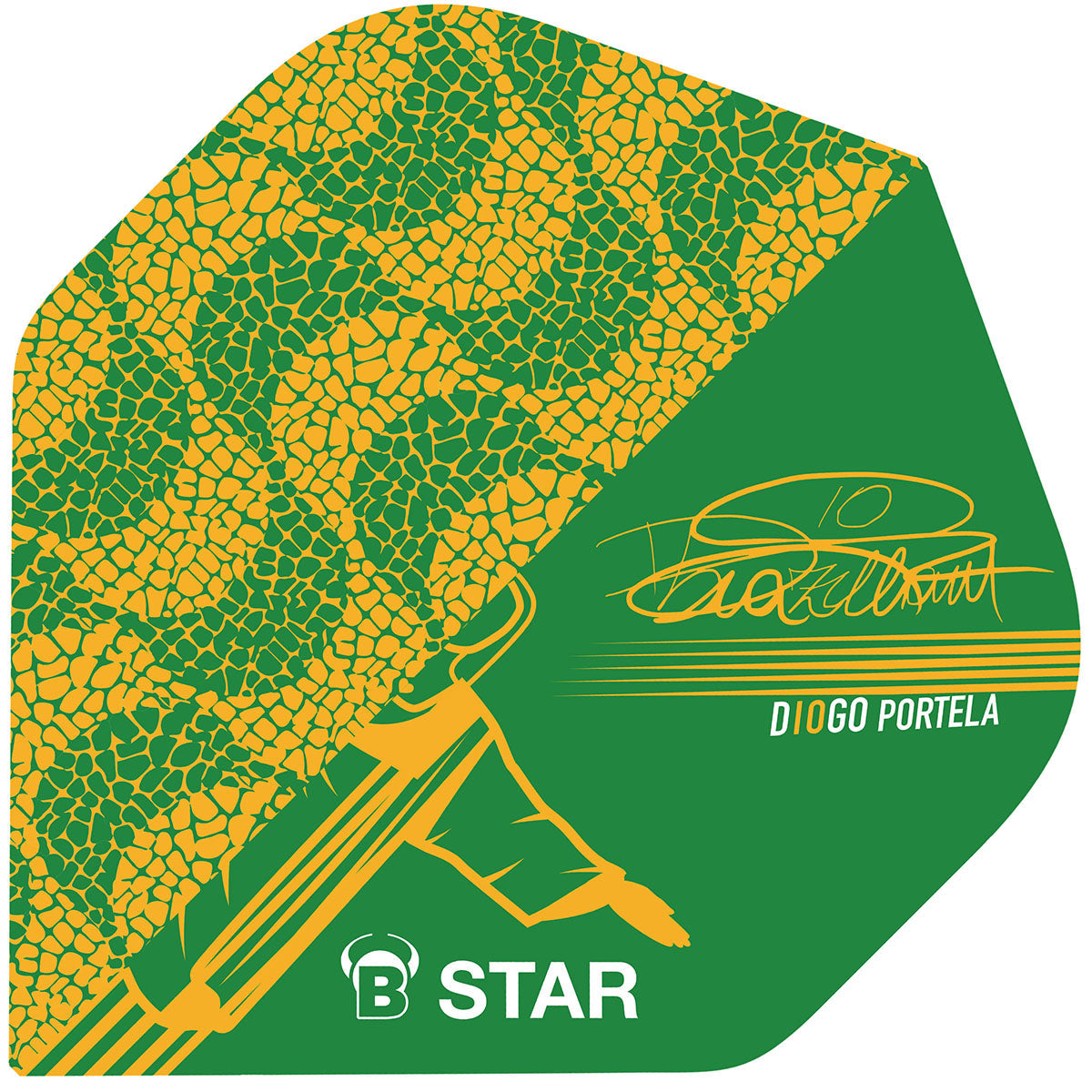 Very stable 100 Micron B-Star Flight in Standard A-Shape. In the official yellow-green design of the BULL'S dart professional Diogo Portela "The Brazilliant".