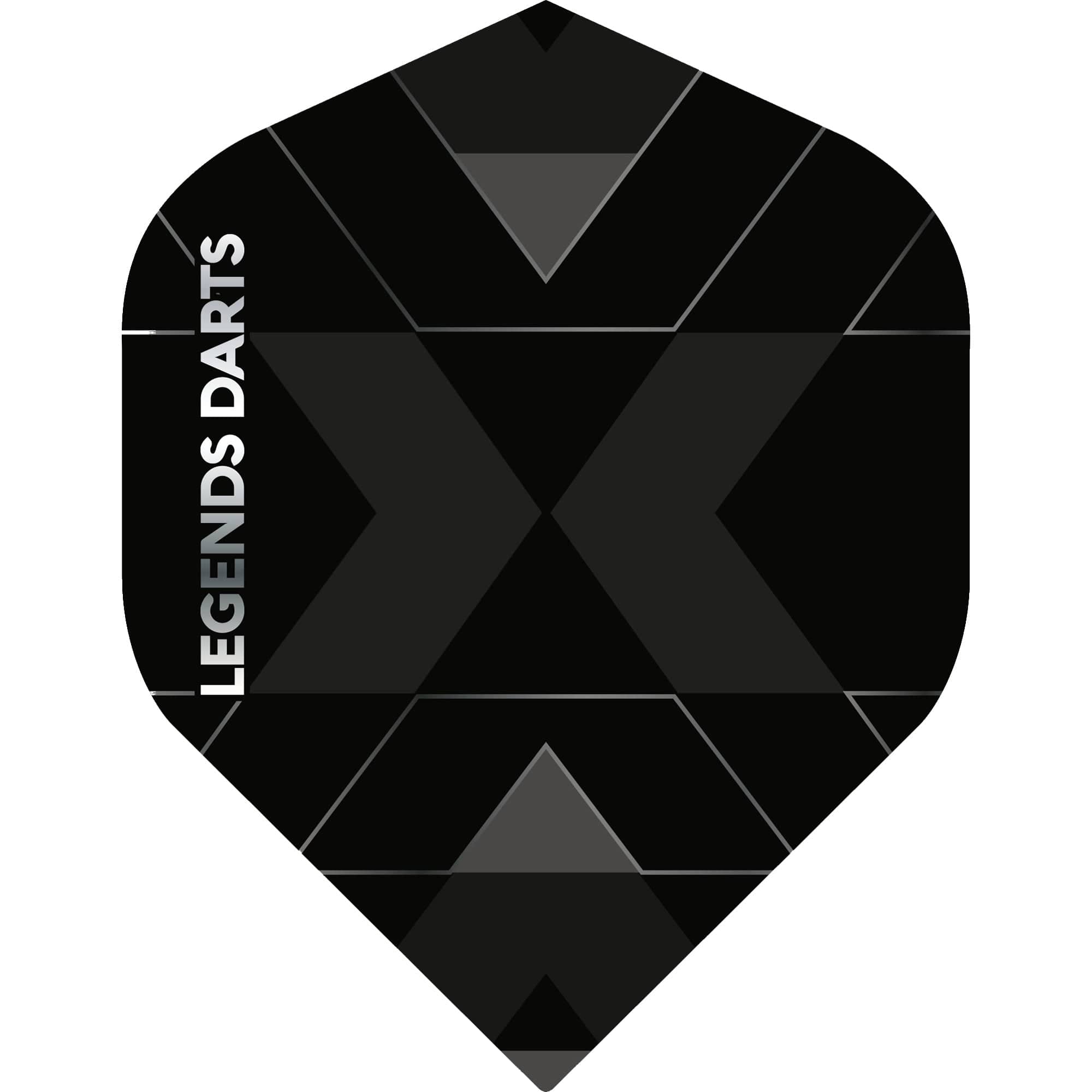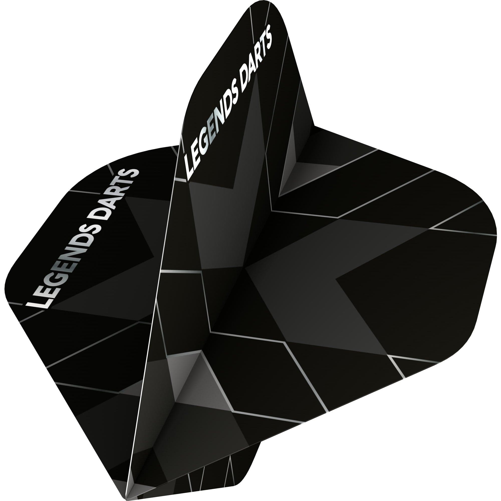 Legend Darts - Pro Series - Dart Flights - 100 Micron - Std - No2 - Black and Grey. These strong 100 Micron dart flights are made from the strongest and most durable material, and feature the a design to complement the Legend Darts Evolution series of darts. Each pack contains 3 flights.