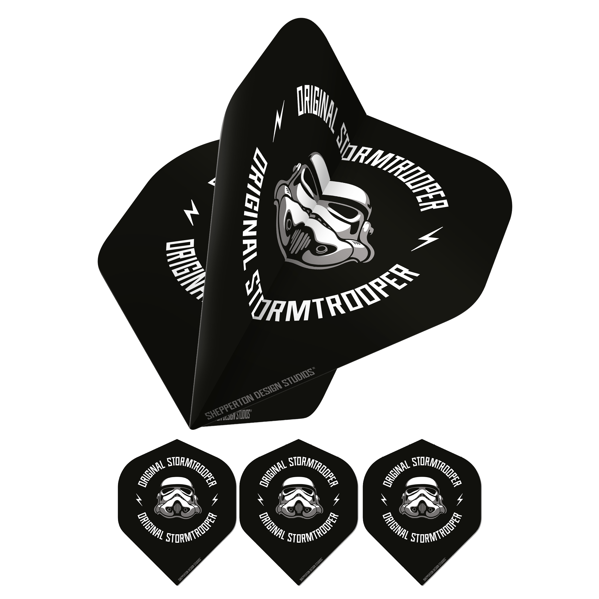 The Original Stormtrooper Dart Flights are constructed from a sturdy 100 micron material, resulting in unrivalled durability and a highly consistent performance. The striking white flights feature an officially licensed design of the iconic Stormtrooper helmet. Micro textured surface maintains excellent grip to the shaft. Each pack contains 3 flights.