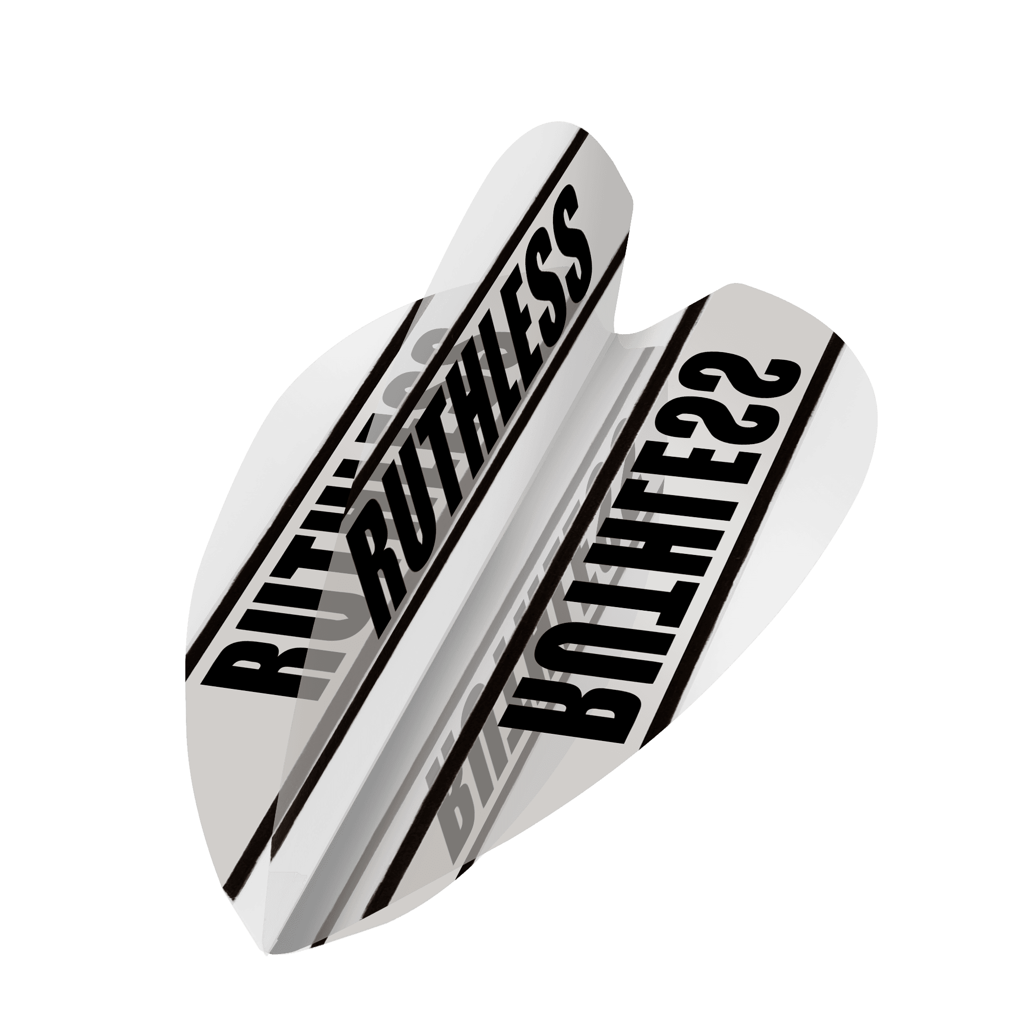 Ruthless Clear Panel Dart Flights - Extra Strong 100 Micron. Each pack contains 3 flights. Ruthless - Clear Panel - Dart Flights - 100 Micron - 1901 - Retro - White - Tough dart Flights suitable for all stems and shafts, old style retro shape and are a great design.