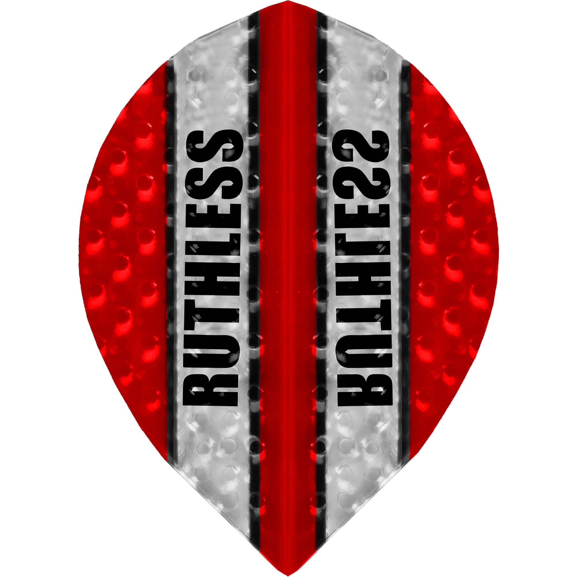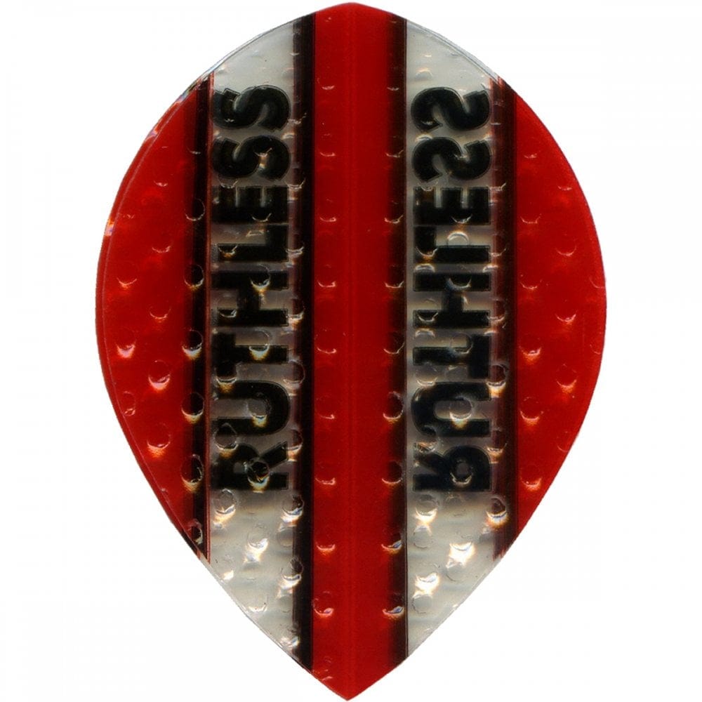 Ruthless Clear Panel Dart Flights - Extra Strong 100 Micron. Each pack contains 3 flights. Ruthless - Clear Panel Embossed - Dart Flights - 100 Micron - 4330 - Pear - Red - Tough pear teardrop Shape Transparent dart flights embossed with dimples to aid flight.