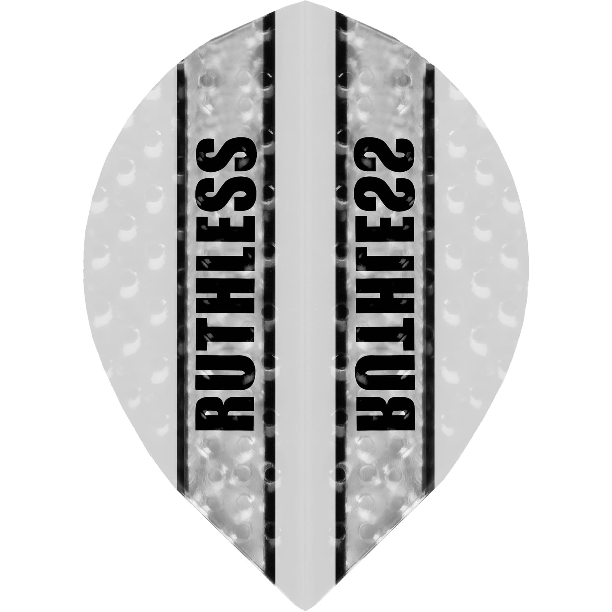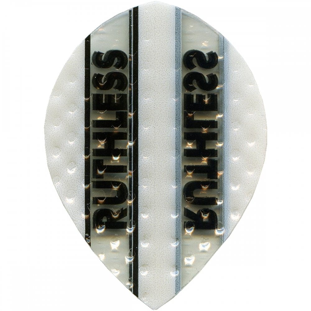 Ruthless Clear Panel Dart Flights - Extra Strong 100 Micron. Each pack contains 3 flights. Ruthless - Clear Panel Embossed - Dart Flights - 100 Micron - 4331 - Pear - White - Tough pear teardrop Shape Transparent dart flights embossed with dimples to aid flight.