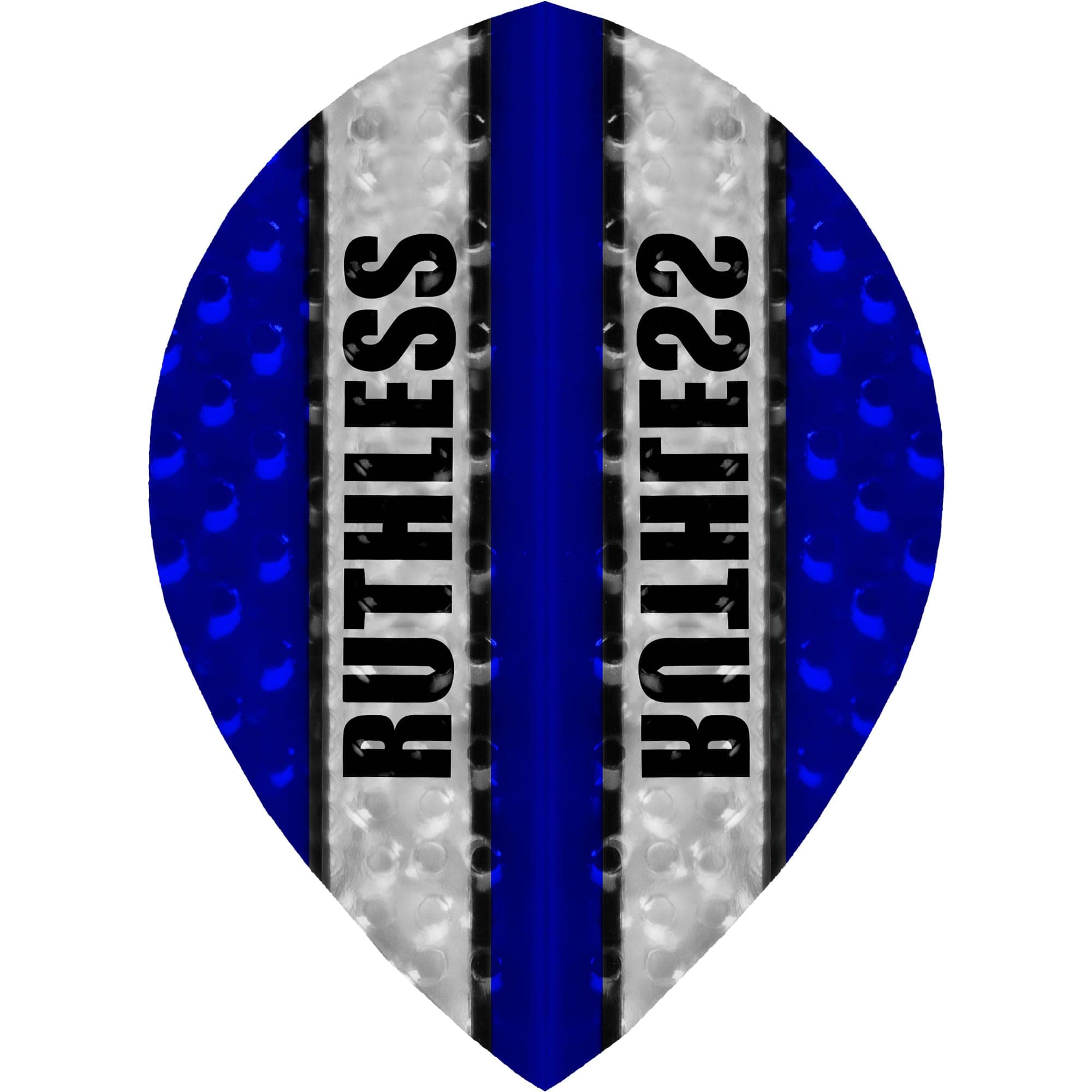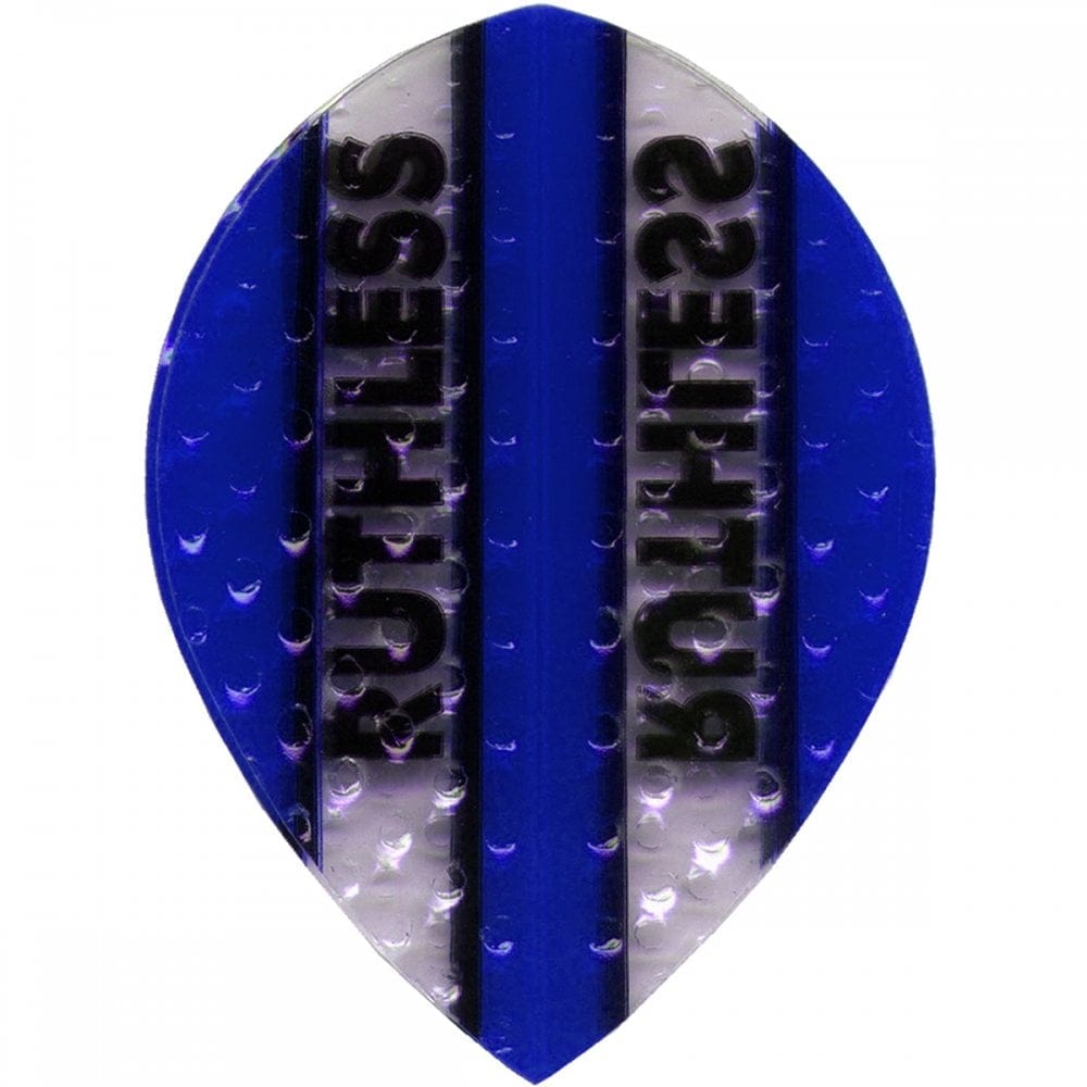 Ruthless Clear Panel Dart Flights - Extra Strong 100 Micron. Each pack contains 3 flights. Ruthless - Clear Panel Embossed - Dart Flights - 100 Micron - 4333 - Pear - Blue - Tough pear teardrop Shape Transparent dart flights embossed with dimples to aid flight.