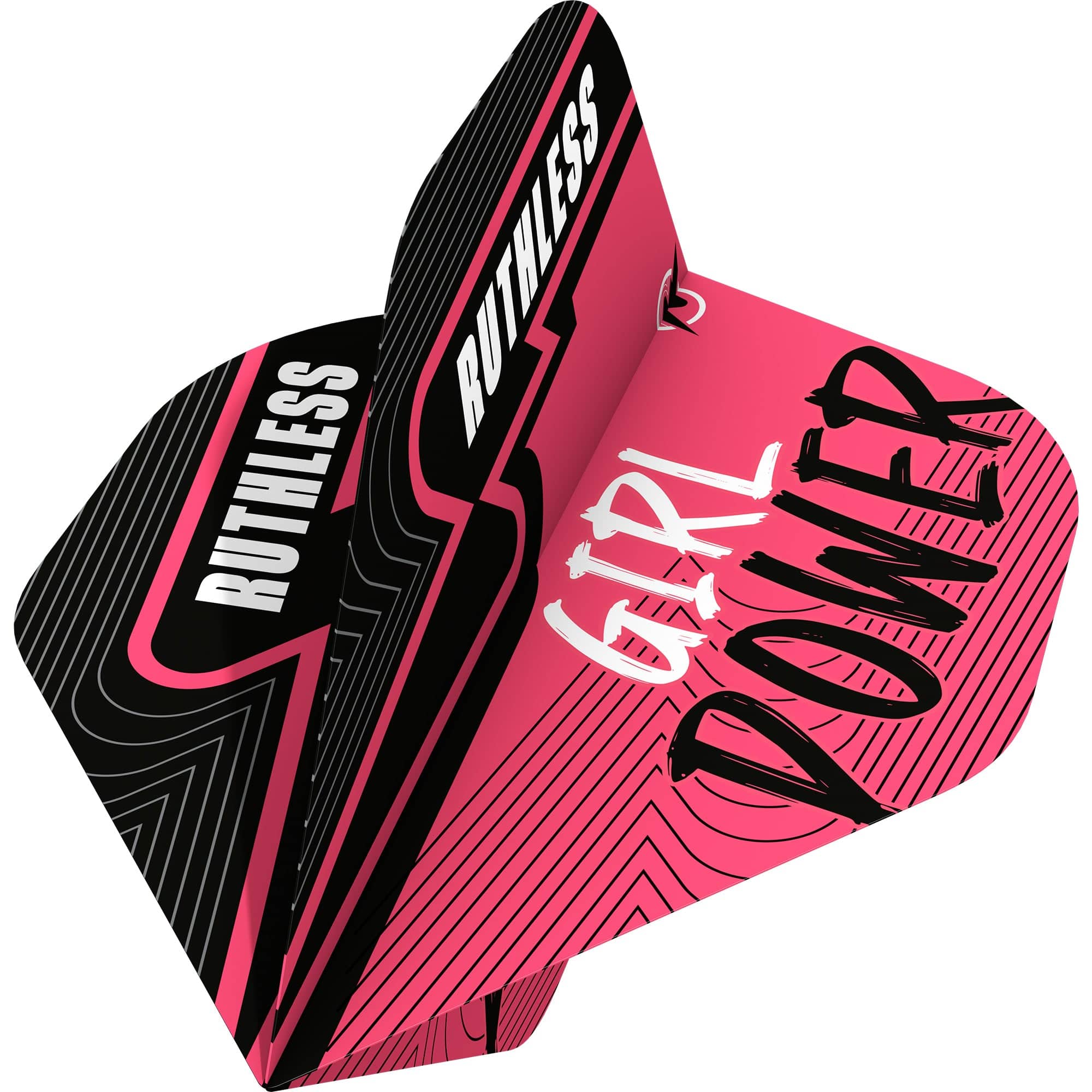 Ruthless Girl Power Dart Flights - Extra Strong 100 Micron. Each pack contains 3 flights. Ruthless - Girl Power - Dart Flights - 100 Micron - No2 - Std - Pink - Super tough dart flights with striking designs in standard shape and will fit any dart stems.