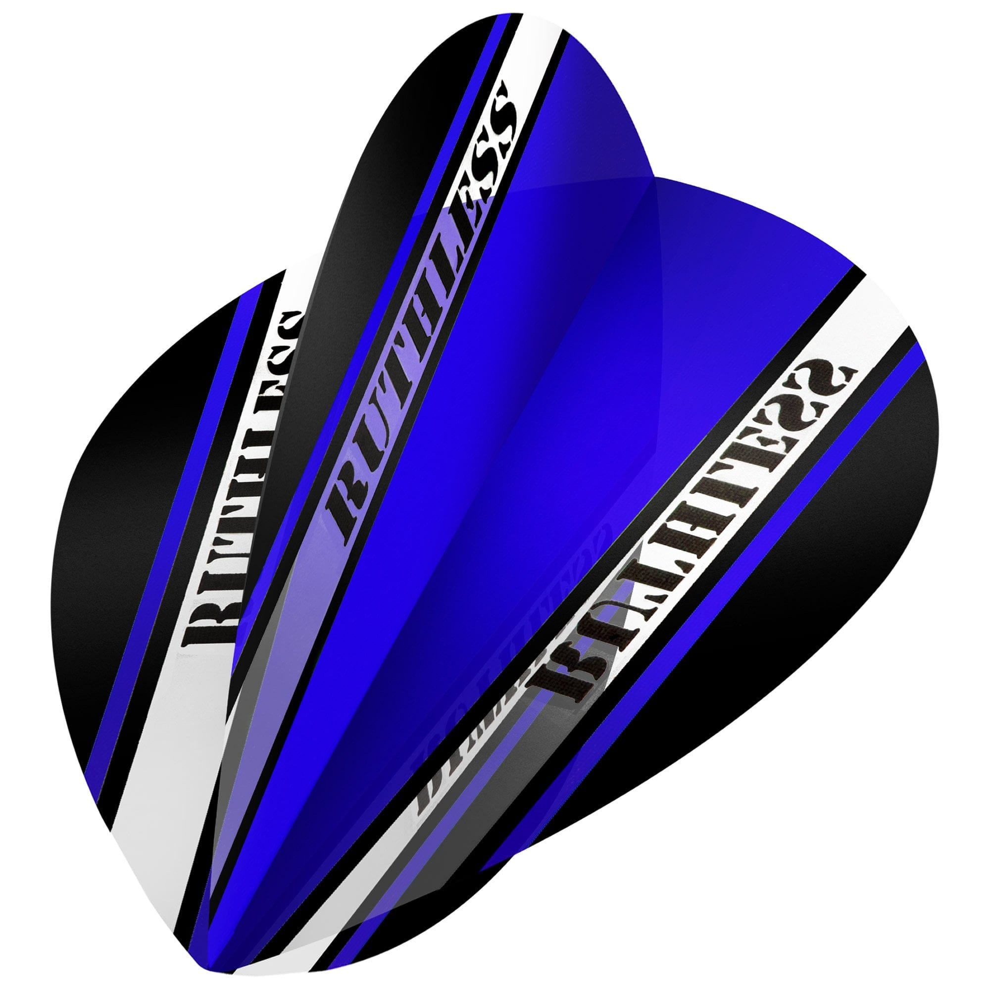 Ruthless V100 Pro Dart Flights - Extra Strong 100 Micron. Each pack contains 3 flights. Ruthless - V100 Pro - Dart Flights - 100 Micron - 20004 - Pear - Blue - Super tough dart flights with striking designs in pear teardrop shape and will fit any dart stems.