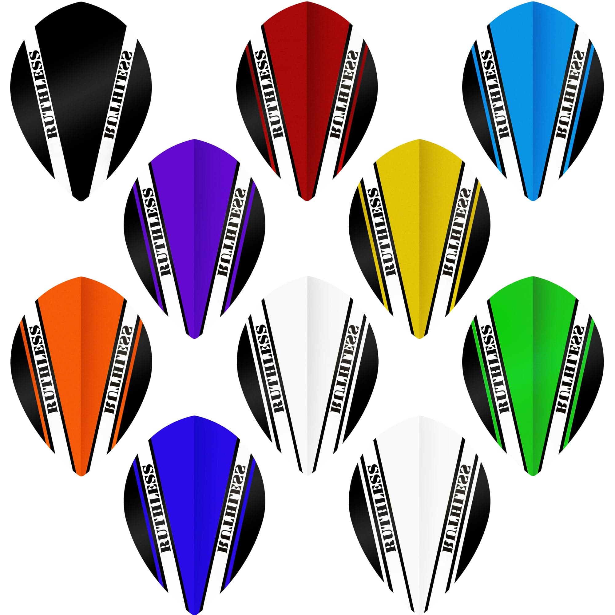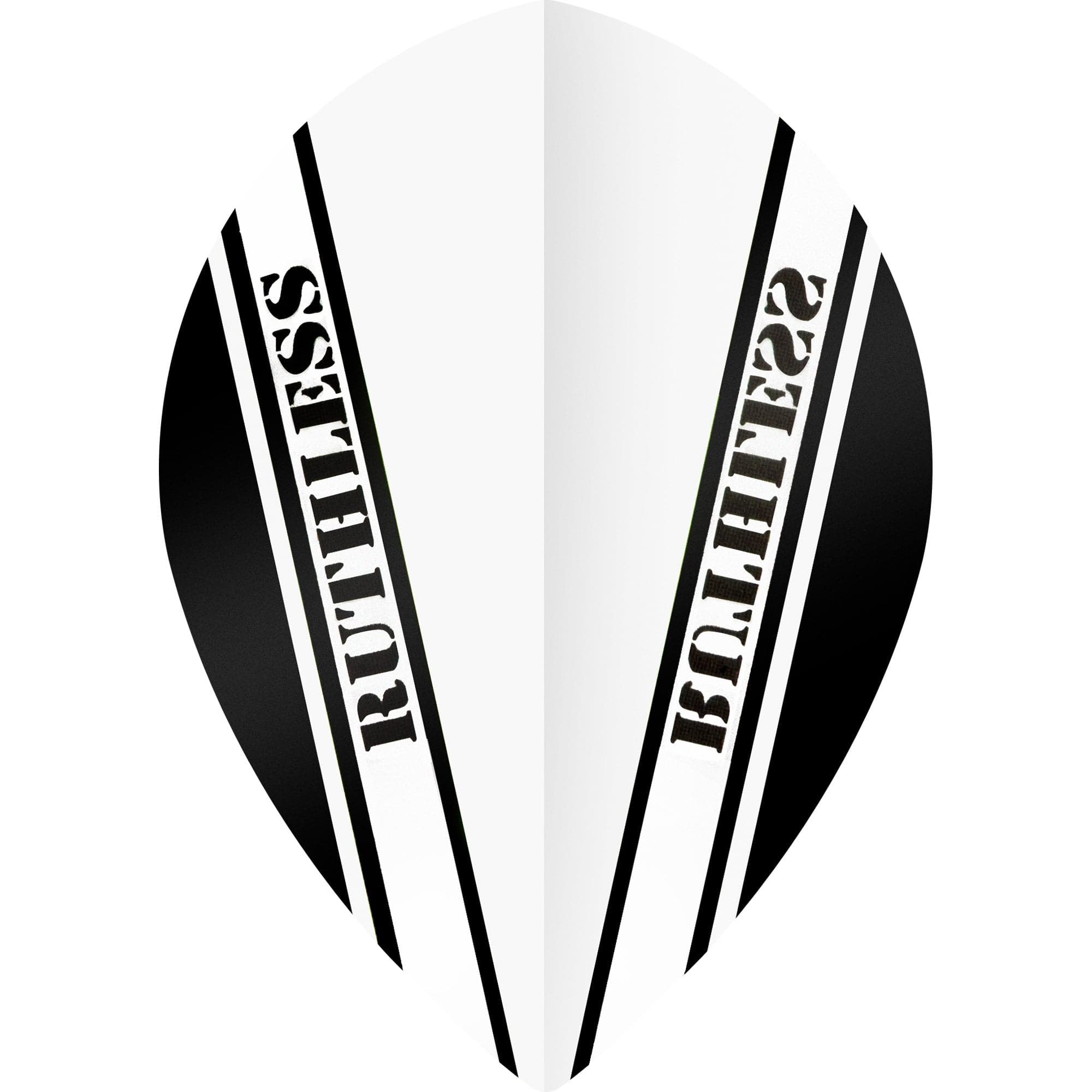 Ruthless V100 Pro Dart Flights - Extra Strong 100 Micron. Each pack contains 3 flights. Ruthless - V100 Pro - Dart Flights - 100 Micron - 20002 - Pear - White - Super tough dart flights with striking designs in pear teardrop shape and will fit any dart stems.