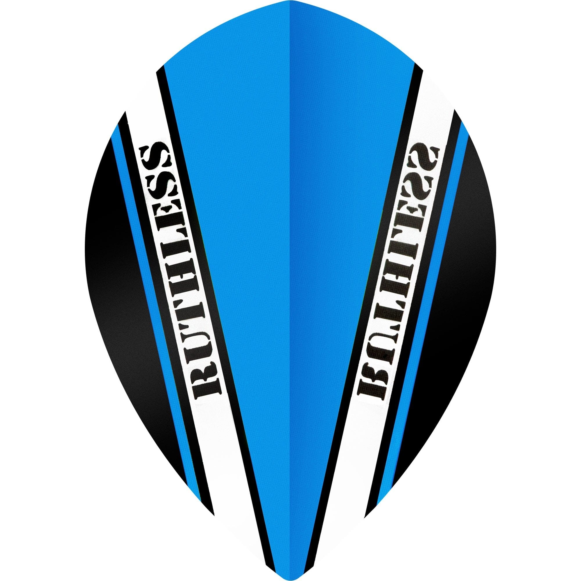 Ruthless V100 Pro Dart Flights - Extra Strong 100 Micron. Each pack contains 3 flights. Ruthless - V100 Pro - Dart Flights - 100 Micron - 20010 - Pear - Light Blue - Super tough dart flights with striking designs in pear teardrop shape and will fit any dart stems.