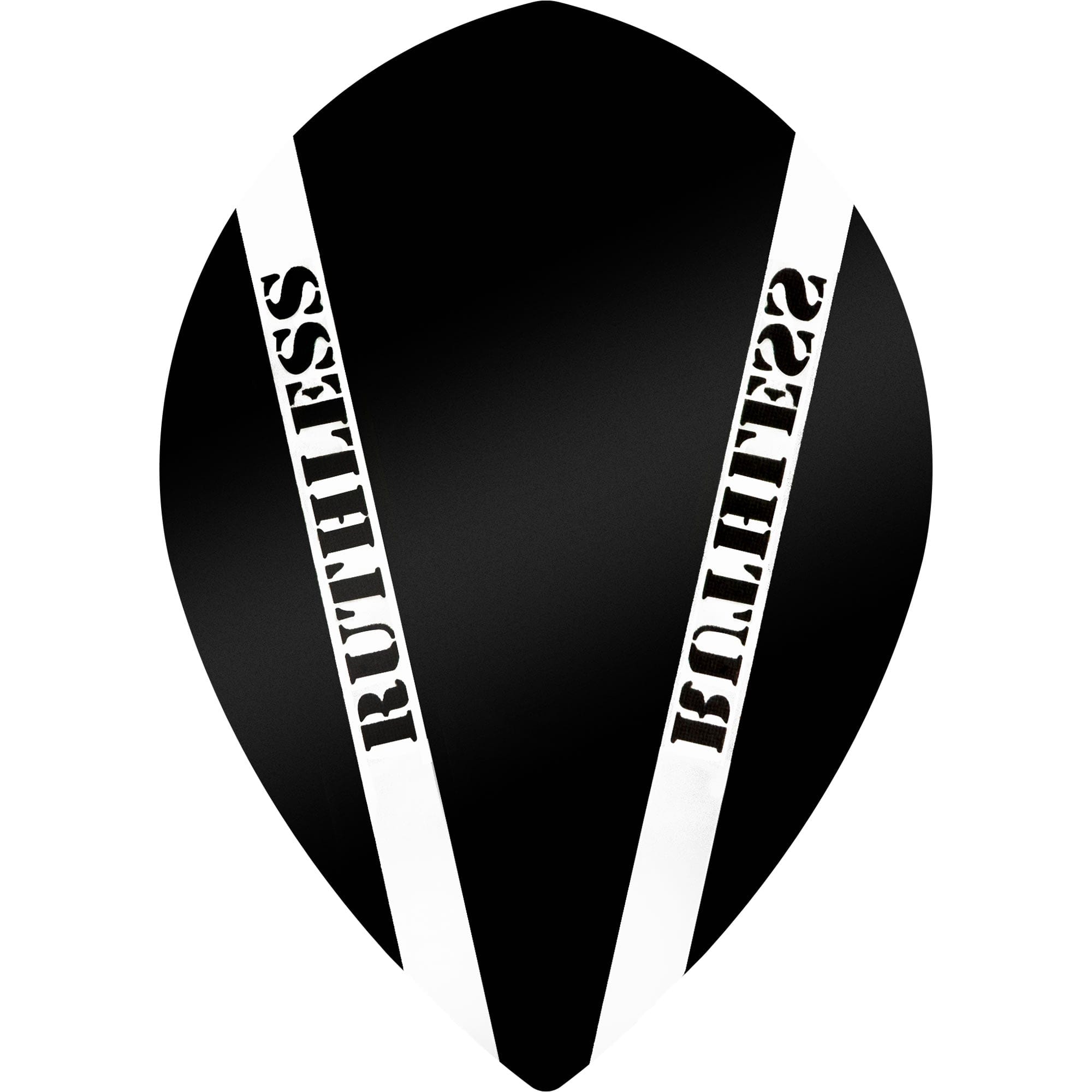 Ruthless V100 Pro Dart Flights - Extra Strong 100 Micron. Each pack contains 3 flights. Ruthless - V100 Pro - Dart Flights - 100 Micron - 20003 - Pear - Black - Super tough dart flights with striking designs in pear teardrop shape and will fit any dart stems.