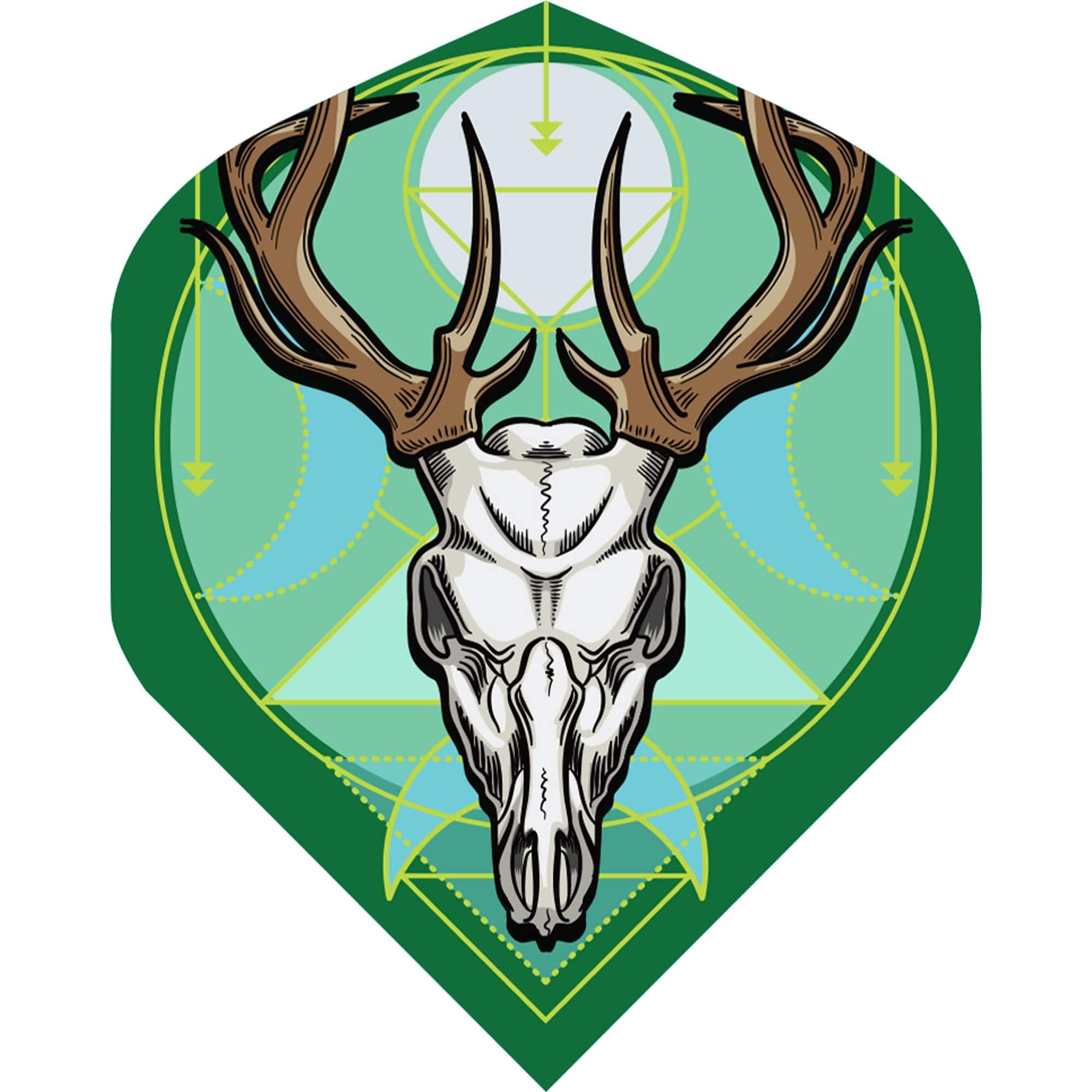 Shot Celt 100 Micron Std No2 Stag Dart Flights. These 100 Micron Std No 2 dart flights are an essential for any darts set up. This dart comes with a Green background with a Blue and Yellow crescent moon design and large Stags head. Each set contains 3 flights.