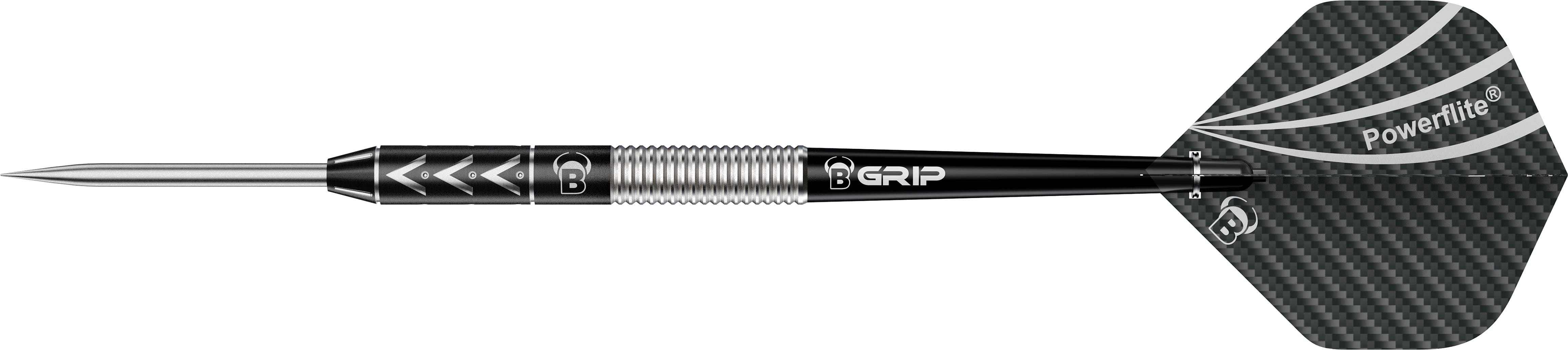 BULL'S Challenger Darts - Steel Tip - 90% Tungsten - Arno Merk - 22g. The Arno Merk Challenger Steel Darts combine precision engineering with a distinctive design, perfectly suited to Arno Merk's playing style. Made from high-quality 90% tungsten and available in 22g, these darts offer a professional setup with both style and substance. The barrel features a visually striking separation between two grip zones. The front section is relatively smooth,highlighted by a sleek black coating and finely engraved symbols that give the dart a refined, individual look. At the center of the barrel, you'll find the classic BULL'S logo, with Arno Merk's personal logo engraved on the opposite side adding a unique and personal touch.