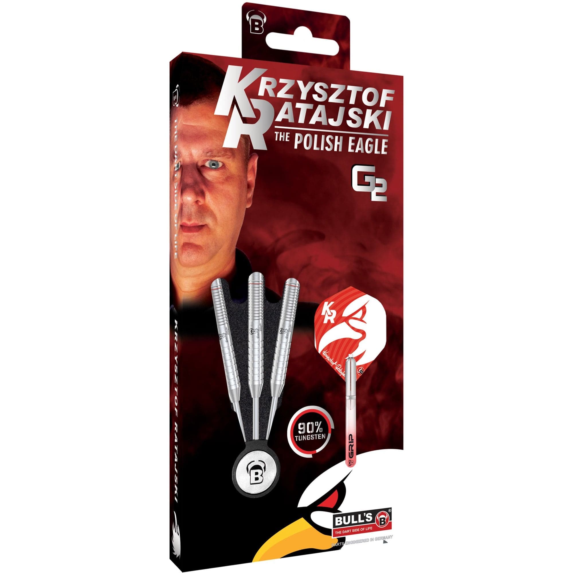 BULL'S Krzysztof Ratajski Steel Tip Darts - Generation 2 - 90% Tungsten. Features: 90% Tungsten Barrels, 1 Set of Bull's Flights, 1 Set of Bull's Shafts.
