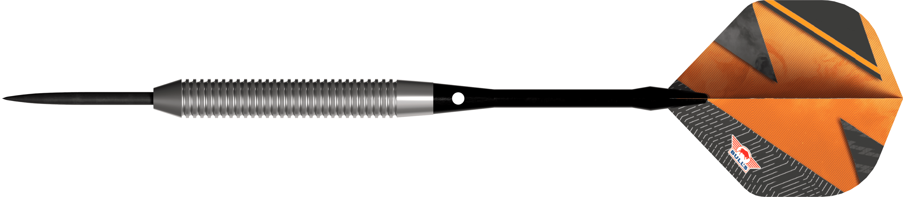 Bulls Lightning Orange Darts - Steel Tip - 80% Tungsten - 21g. The Bull’s Lightning 80% Orange is not just an addition to your collection; it is a game changer that will elevate your performance to the next level. Formerly a McKicks darts, it has now been revamped and rebranded in Bull’s style, offering unmatched quality and performance for a sharp price. Crafted with 80% tungsten, these darts provide an ideal balance of durability and slimness for tighter groupings. The barrel has the popular straight profile, providing players with maximum control and a consistent feel. This dart has ringed grip which also is one of the most common grip styles on a dart.