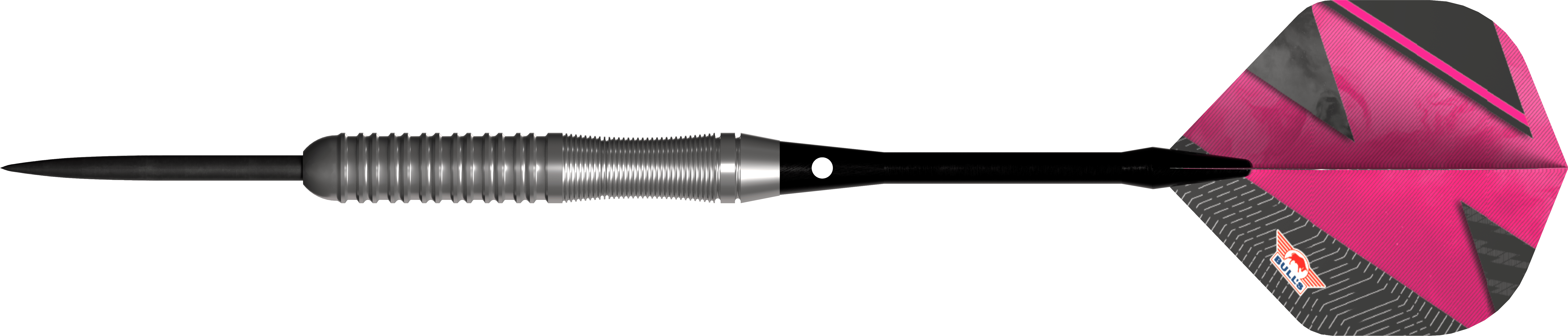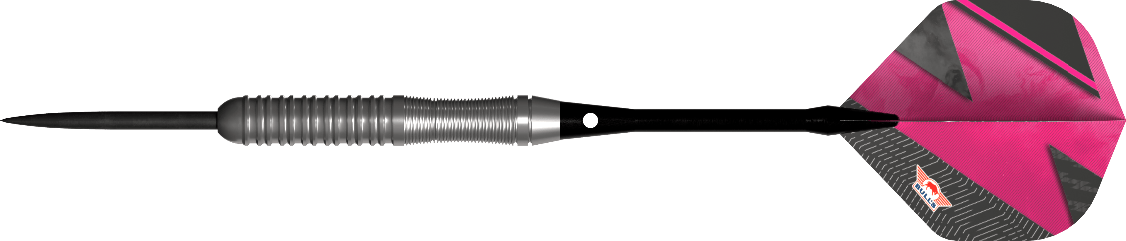 Bulls Lightning Pink Darts - Steel Tip - 80% Tungsten - 26g. The Bull’s Lightning 80% Pink is not just an addition to your collection; it is a game changer that will elevate your performance to the next level. Formerly a McKicks darts, it has now been revamped and rebranded in Bull’s style, offering unmatched quality and performance for a sharp price. Crafted with 80% tungsten, these darts provide an ideal balance of durability and slimness for tighter groupings. Less tungsten in the barrel also means a lower price while still profiting from a design for a professional. The barrel has the popular straight shape with a curve in the rear of the barrel, providing players with maximum control and a consistent feel. This dart has ringed grip which also is the most common grip of a dart. The curved rear of the barrel gives players a great reference point to grip the barrel at the same place every time.