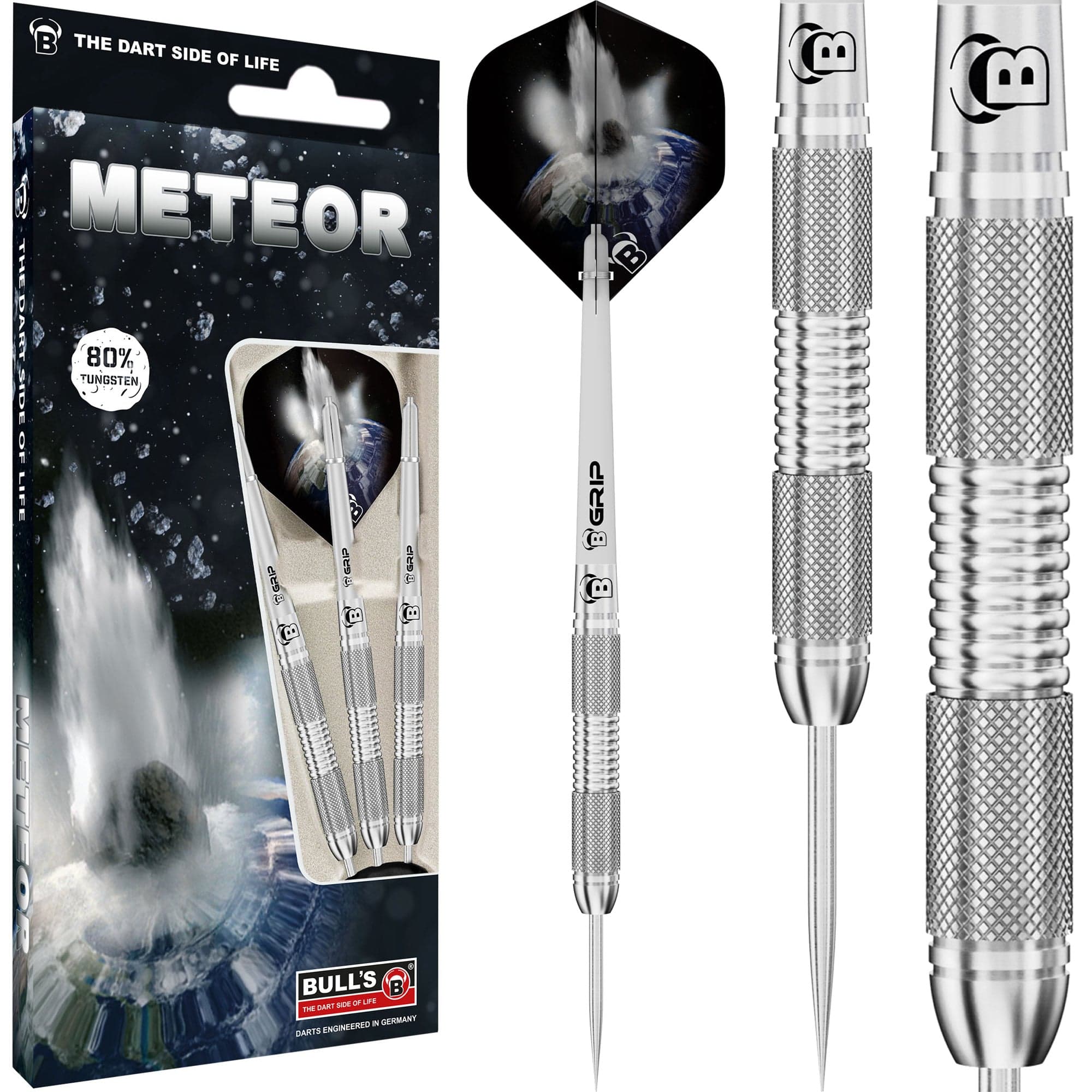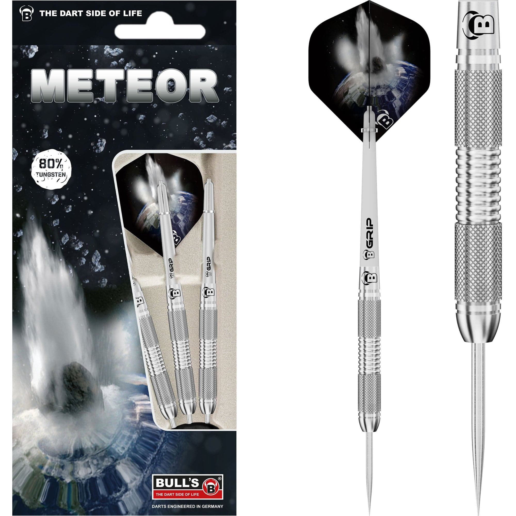 BULL'S Meteor Darts - Steel Tip - 80% Tungsten - MT9 - Twin Knurl - 25g. This Bulls Meteor Dart is made from 80% Tungsten and features a selection of grip types with different weights through the range. The MT9 is a straight, slim barrel with alternating ringed and knurled grip. A B-Grip-2 shaft as well as Bulls flights complete the dart perfectly.