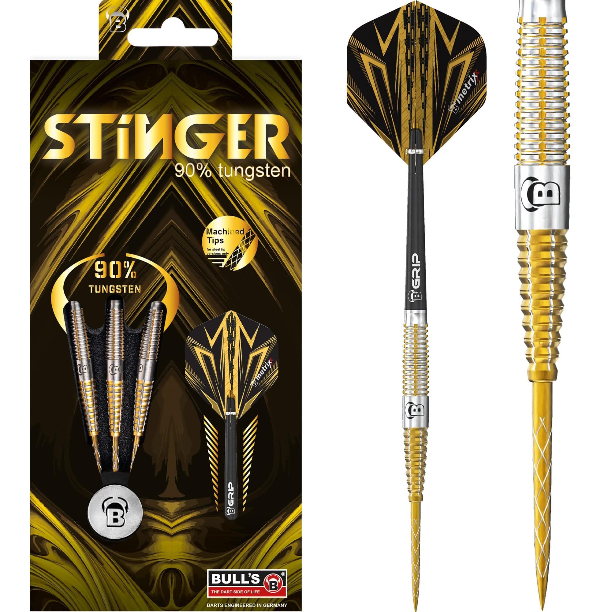 BULL'S Stinger Steel Tip Darts - 90% Tungsten. Features: 90% Tungsten Barrels, 1 Set of Bull's Flights, 1 Set of Bull's Shafts.