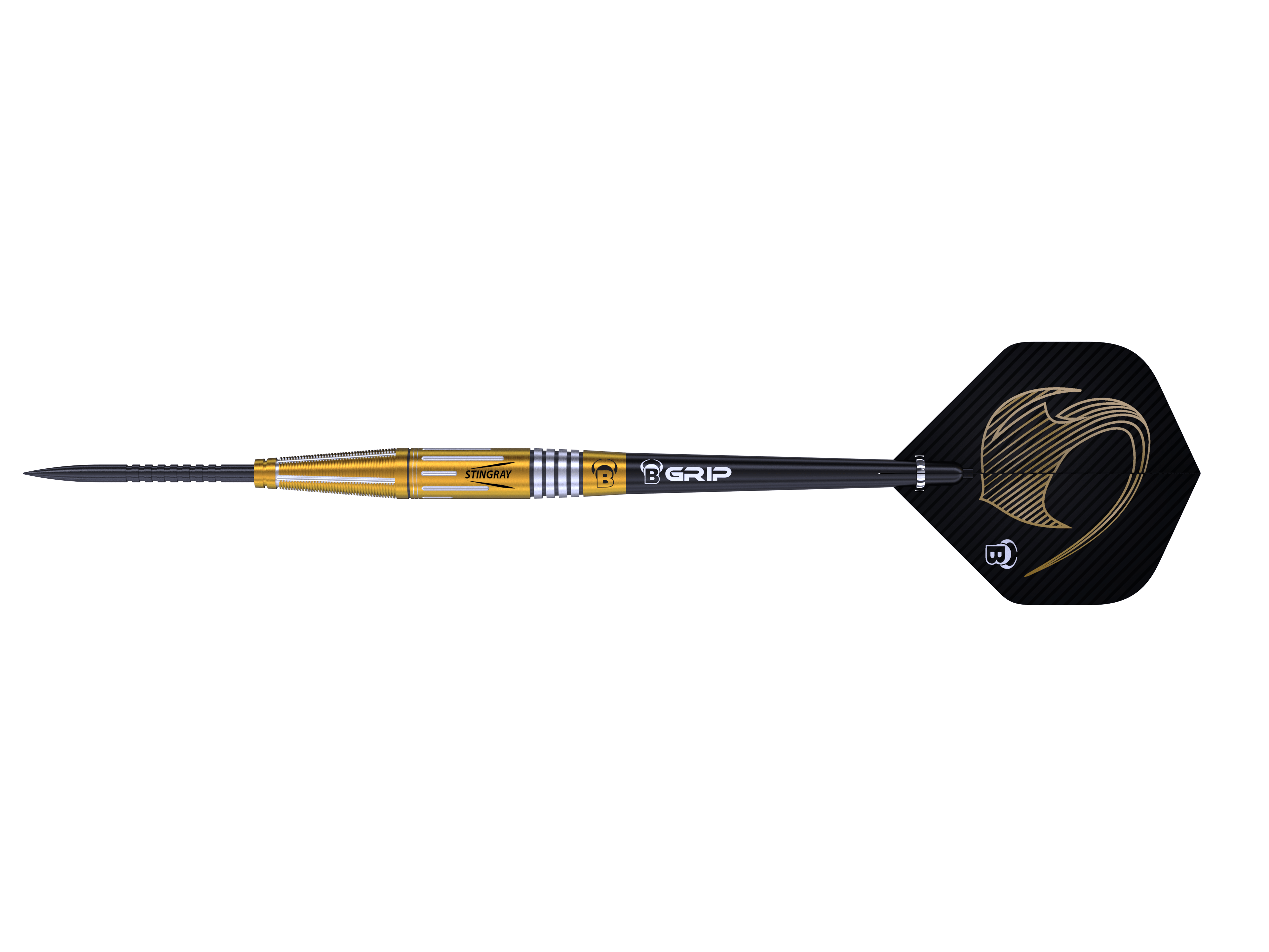 BULL'S Stingray Darts - Steel Tip - 90% Tungsten - S4 - 24g. The popular Stingray series debuts in a fresh new look. Now equipped with pressed finger-grip points, it replaces the previous B5-threaded interchangeable points. This upgrade provides even better hold and control during throws. Made from high-quality 90% tungsten and featuring a sleek golden finish, the Stingray series excels not only in performance but also in style.