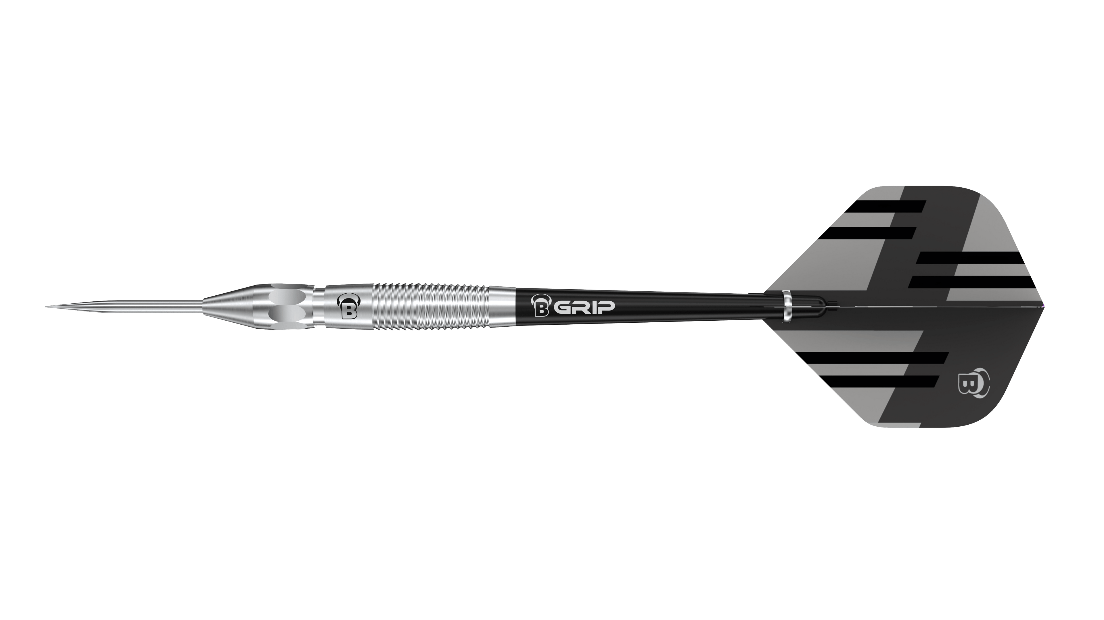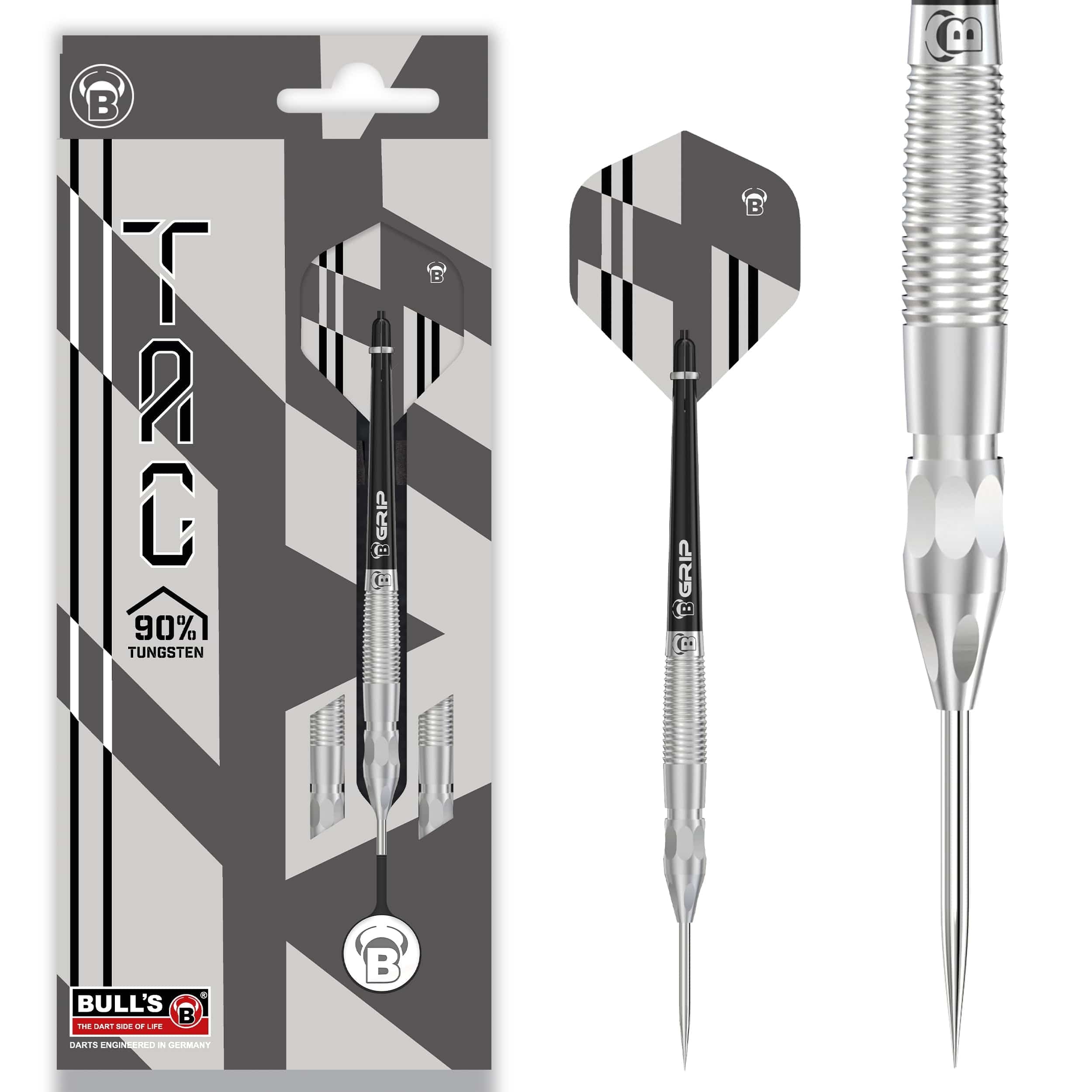 BULL'S Tac Darts - Steel Tip - 90% Tungsten - T2 - 23g. The TAC series stands out with its distinctive barrel shapes, offering numerous grip options for players. A hallmark of the TAC series is the tapered design of all barrels toward the tip. TheT1 features grip grooves at both the front and back, complemented by various grip zones distributed throughout the barrel, making it suitable for multiple grip styles. Made from 90% tungsten,the T1 is available in weights of 21g, 23g, and 25g, providing dart players with maximum precision and control.