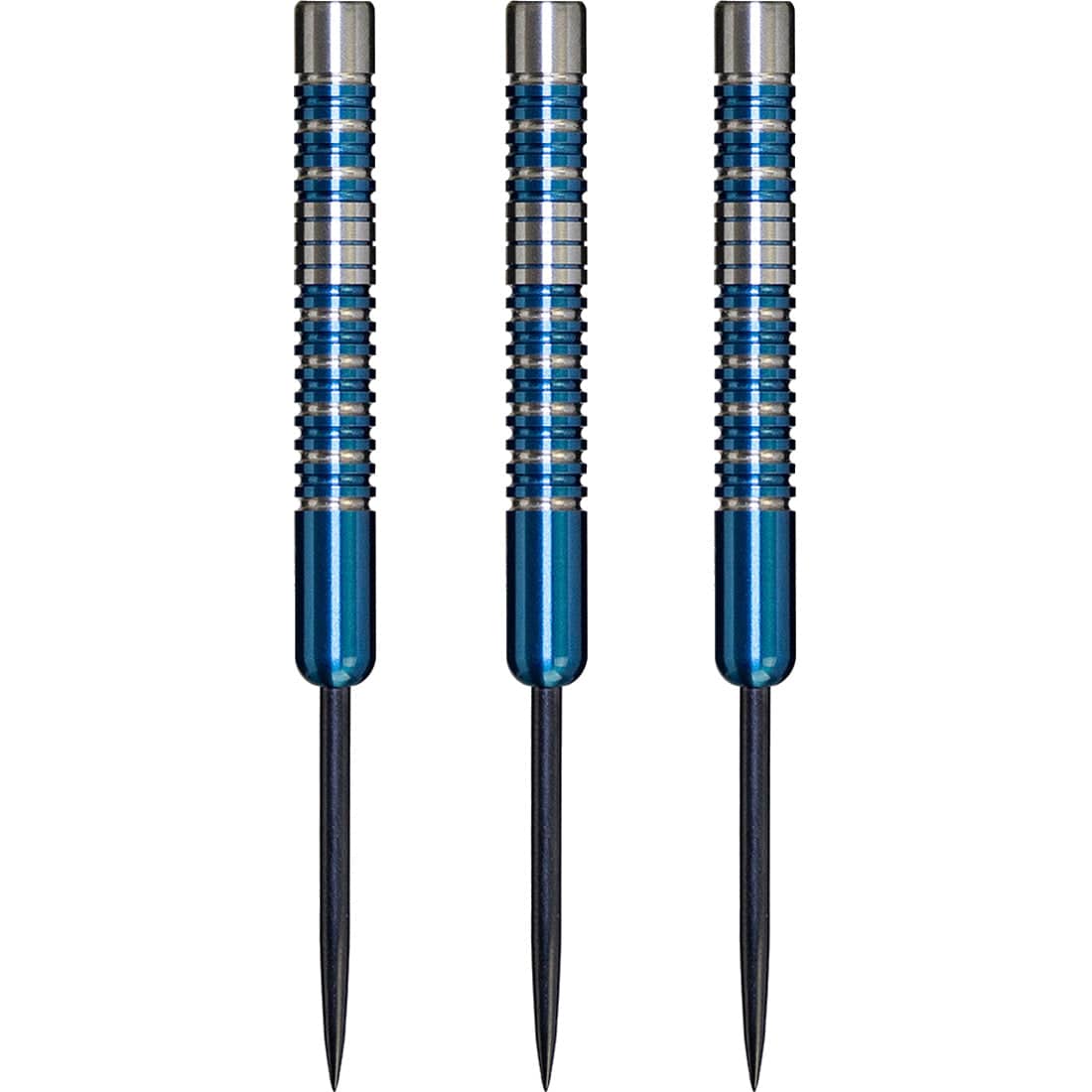 Cosmo Darts - Discovery Label - Steel Tip - Jeff Smith - Blue - 21g. This Cosmo Jeff Smith discovery label 90% straight tungsten dart features a ringed design with blue titanium remachined finish. They come complete with Cosmo Fit Flights and Fit Shaft Gear shafts and fit point plus dart points.