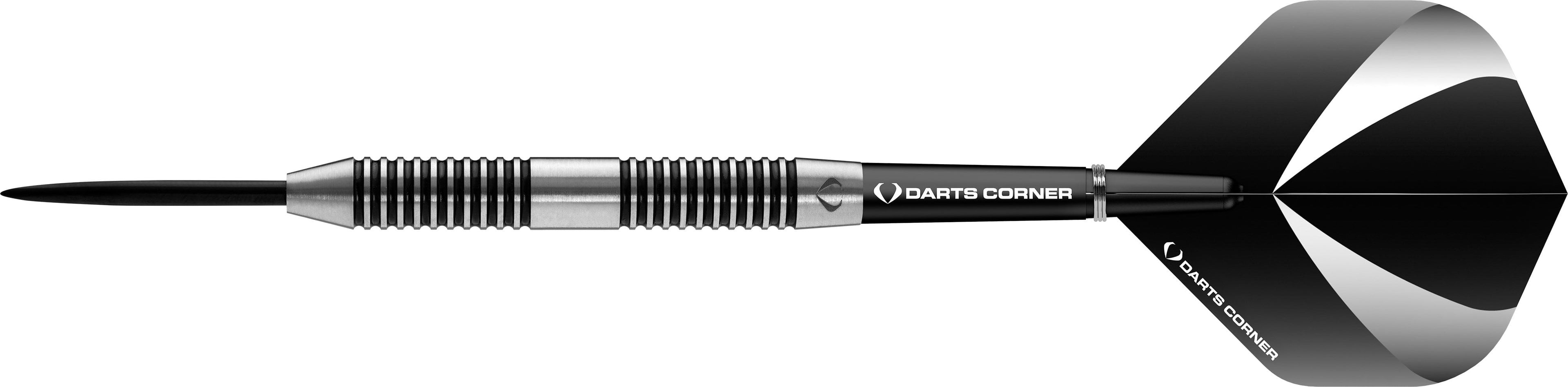 Darts Corner Warfare 80% Steel Tip Darts - M1 Black Ringed. Quality 80% Tungsten Darts. Includes: 2 Sets of Darts Corner Flights, 2 Set of Nylon Shafts with springs, Point Protector, Darts Corner Bar Wallet, Checkout Card. Darts Corner Warfare Darts - Steel Tip - M5 - Black Ring - 25g-D0629