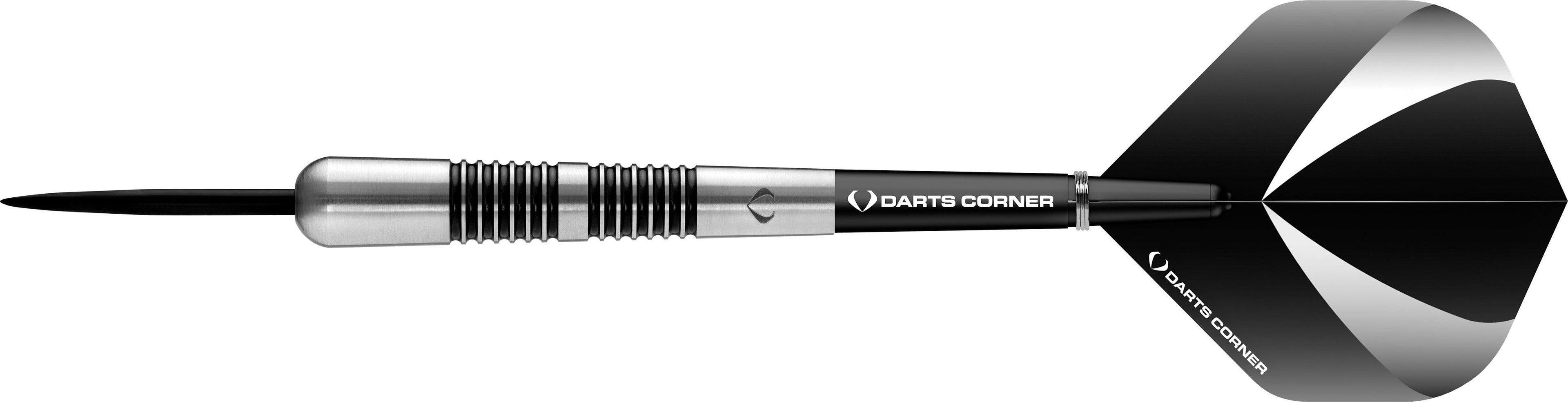 Darts Corner Warfare 80% Steel Tip Darts - M6 Black Ringed. Quality 80% Tungsten Darts. Includes: 2 Sets of Darts Corner Flights, 2 Set of Nylon Shafts with springs, Point Protector, Darts Corner Bar Wallet, Checkout Card. Darts Corner Warfare Darts - Steel Tip - M6 - Black Ring - 26g-D0667