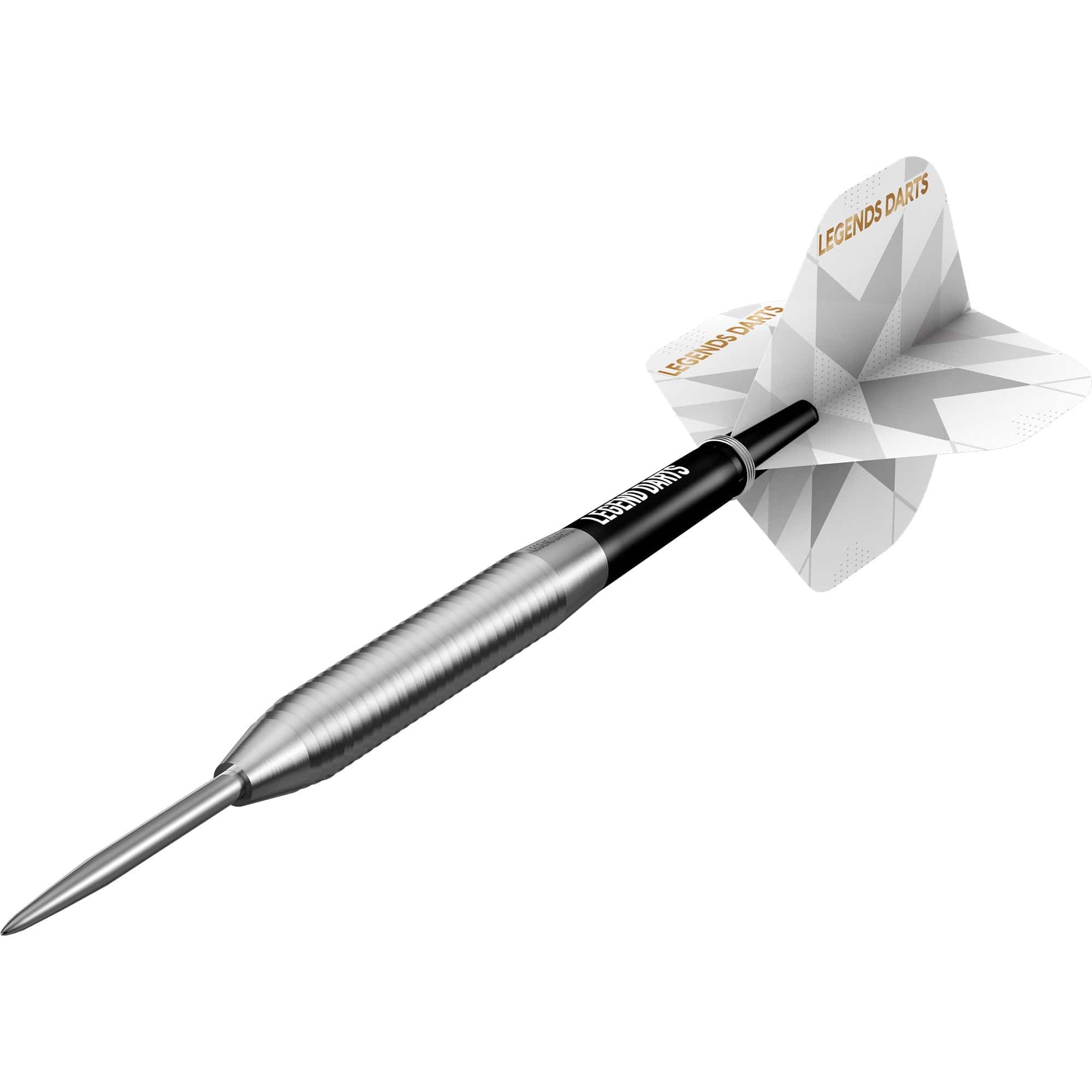 Legend Darts - Steel Tip - 90% Tungsten - Pro Series - V15 - Razor Grip - 24g D0898. These darts feature a straight barrel with a razor grip running along its entire edge for the extreme grip. Each dart is complete with flights and nylon shafts with springs.
