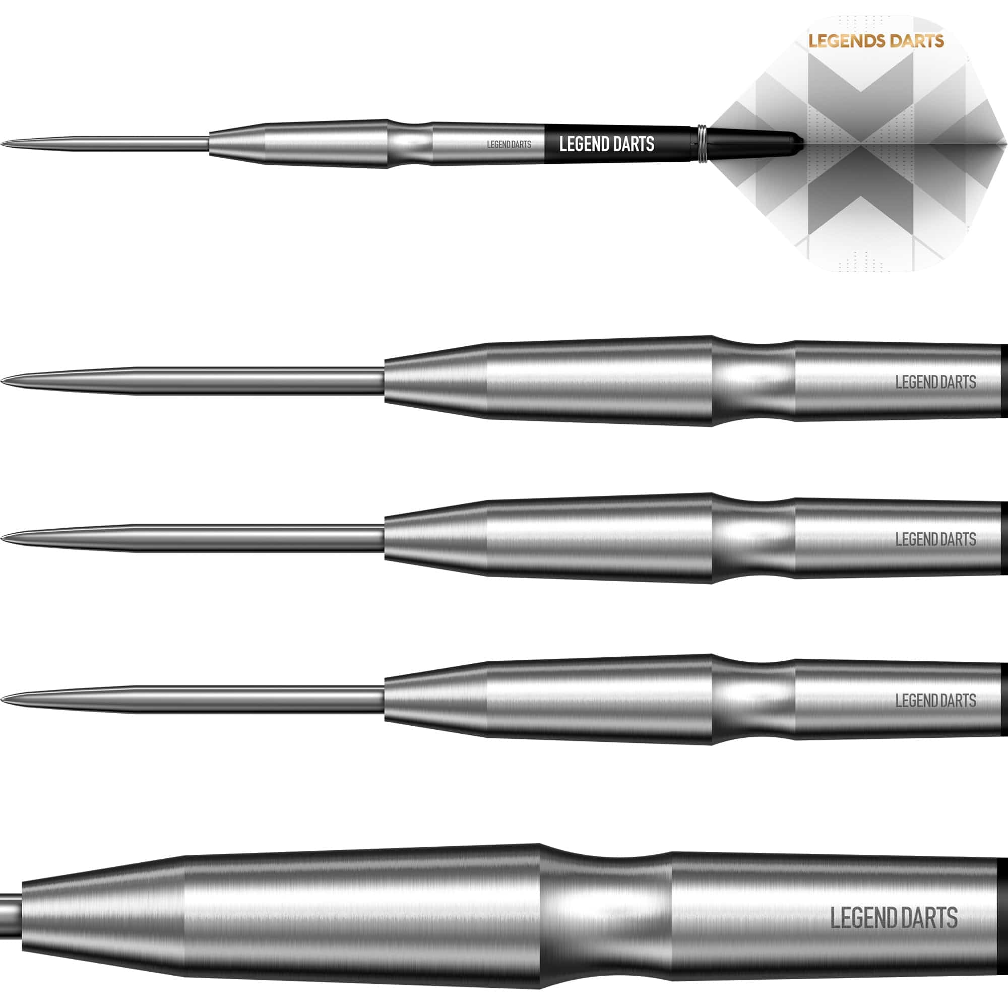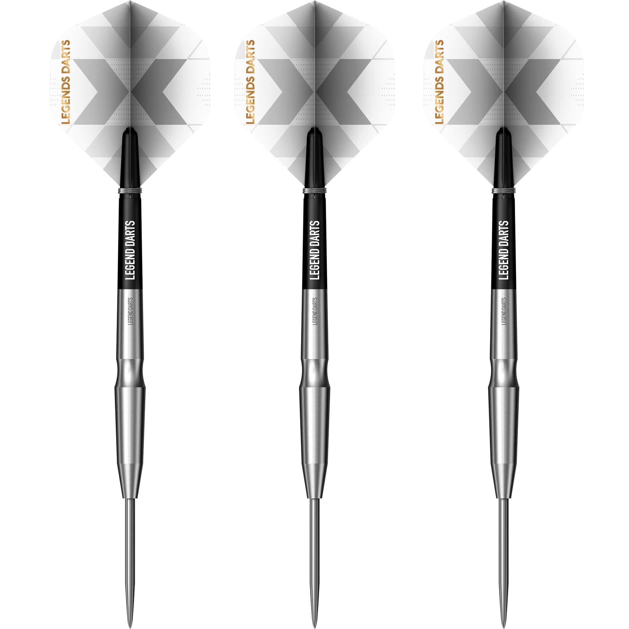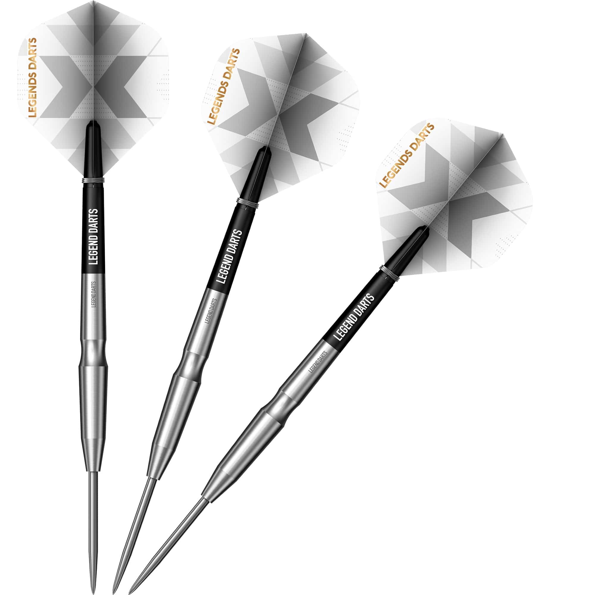 Legend Darts - Steel Tip - 90% Tungsten - Pro Series - V23 - Smooth Scallop - 22g - D0893. These darts feature a completely smooth surface but is contoured and designed for an accurate grip. It features a tapered front part of the barrel, with a scallop before tapering back towards the rear of the dart. Each dart is complete with flights and nylon shafts with springs.