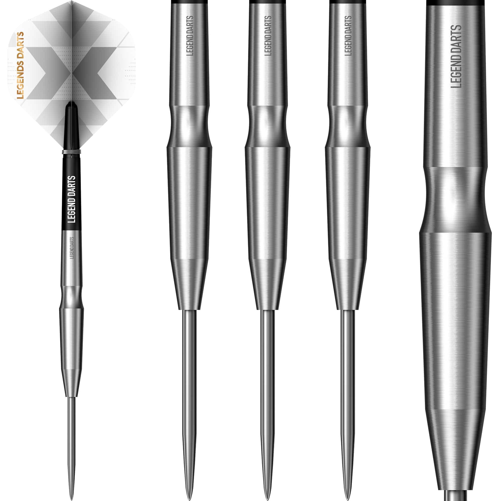 Legend Darts - Steel Tip - 90% Tungsten - Pro Series - V23 - Smooth Scallop - 24g - D0894. These darts feature a completely smooth surface but is contoured and designed for an accurate grip. It features a tapered front part of the barrel, with a scallop before tapering back towards the rear of the dart. Each dart is complete with flights and nylon shafts with springs.