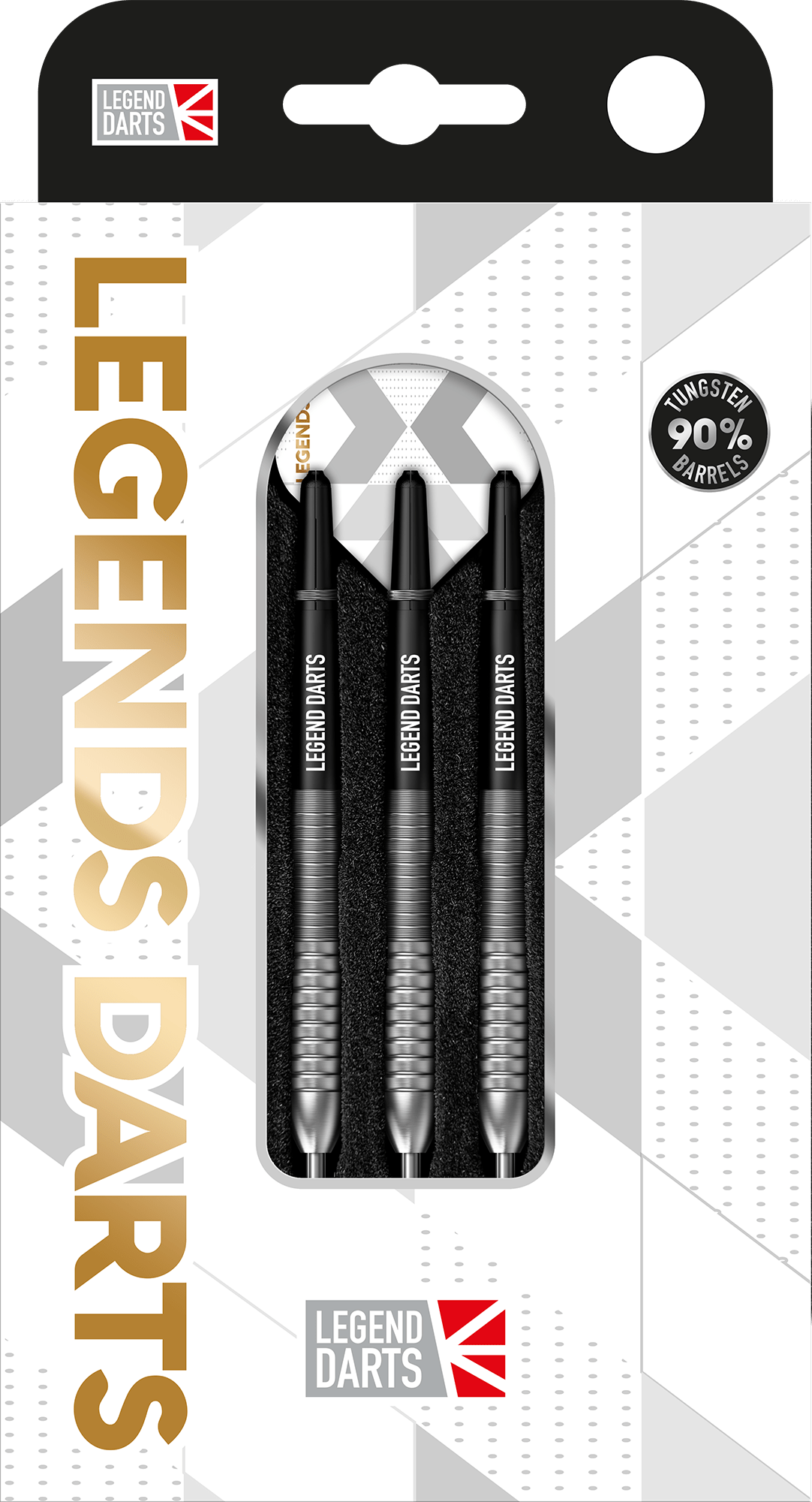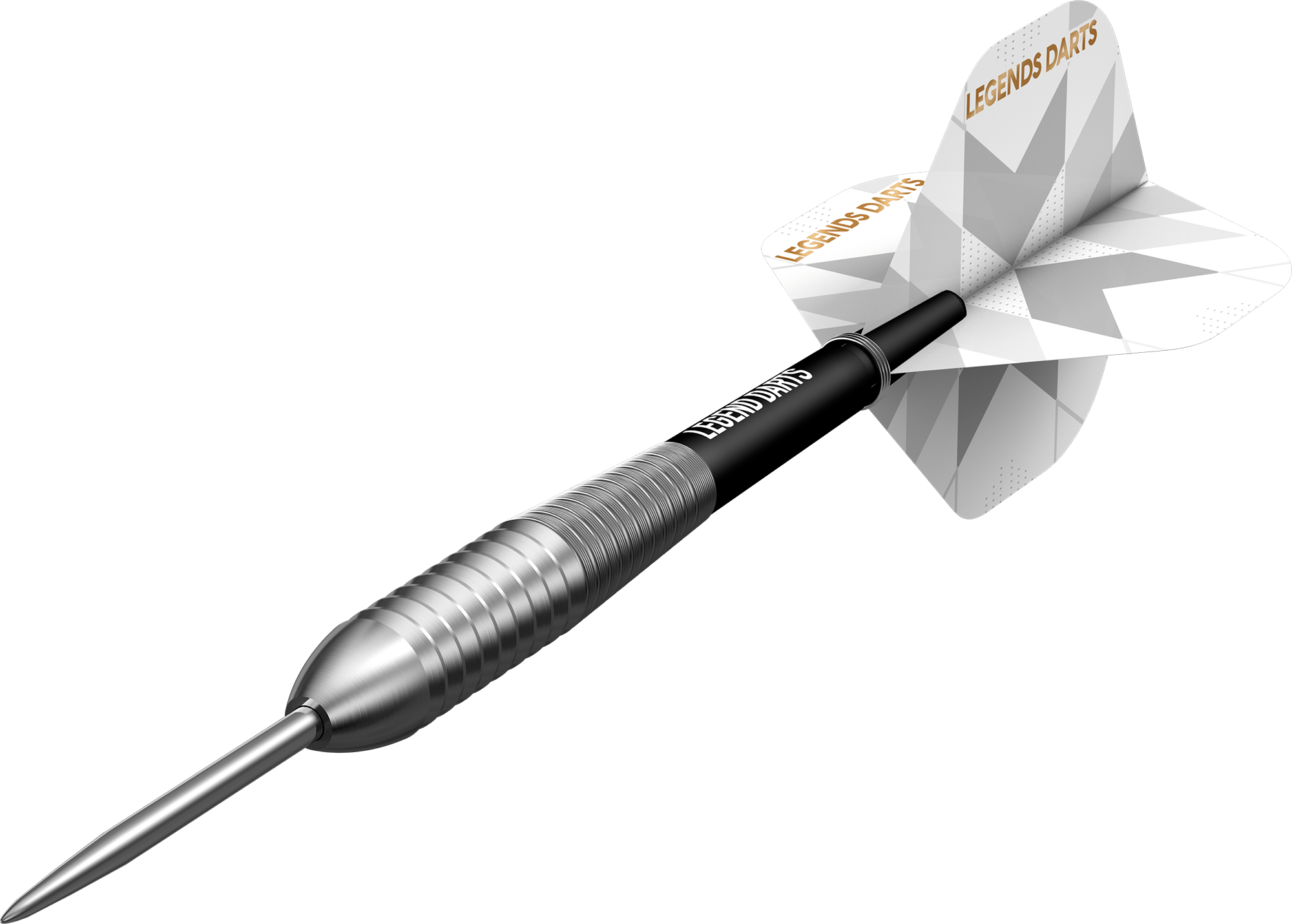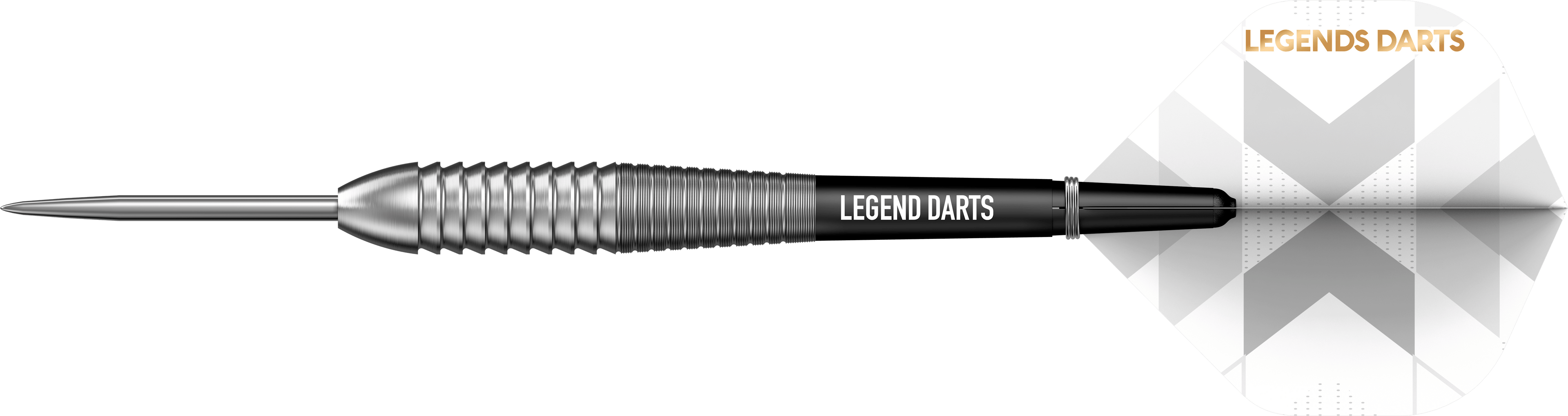 Legend Darts - Steel Tip - 90% Tungsten - Pro Series - V25 - Shark Bomb - 24g. These darts feature a rear shark grip. It features a soft rounded nose on a bomb barrel, with micro grooving down the taper to the rear of the dart. Each dart is complete with flights and nylon shafts with springs.