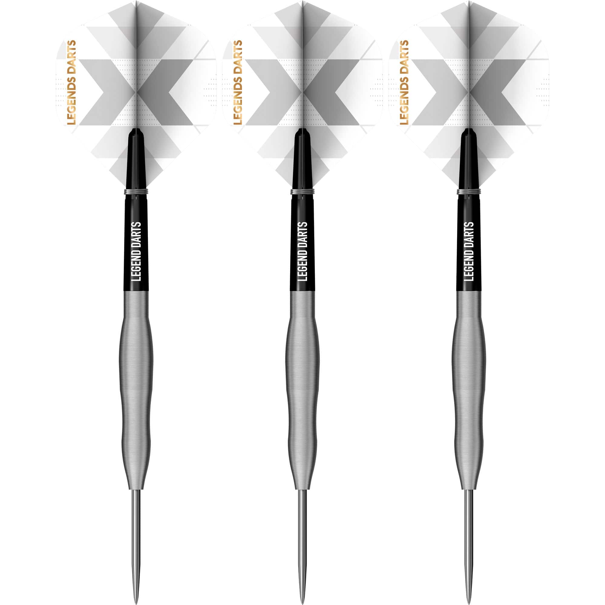 Legend Darts - Steel Tip - 90% Tungsten - Pro Series - V32 - Full Microgrip - 24g. Pack contents: 90% Tungsten Barrels, Legend shafts and flights.