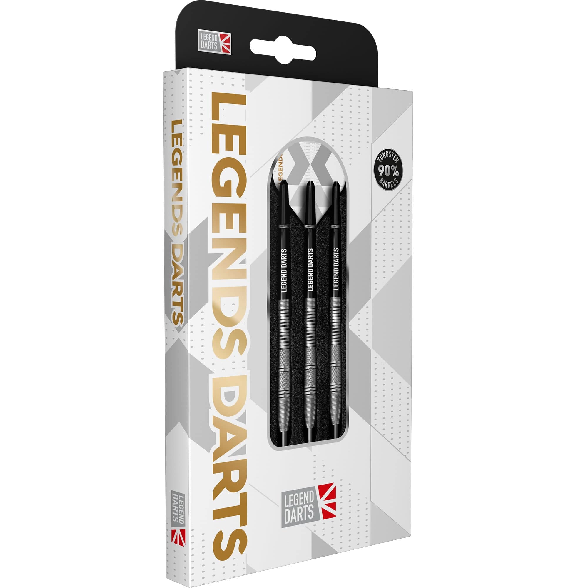 Legend Darts - Steel Tip - 90% Tungsten - Pro Series - V34 - Knurl Micro Mix - 22g. The tungsten barrels contain a mix of knurling and micro rings. Pack contents: 90% Tungsten Barrels, Legend shafts and flights.