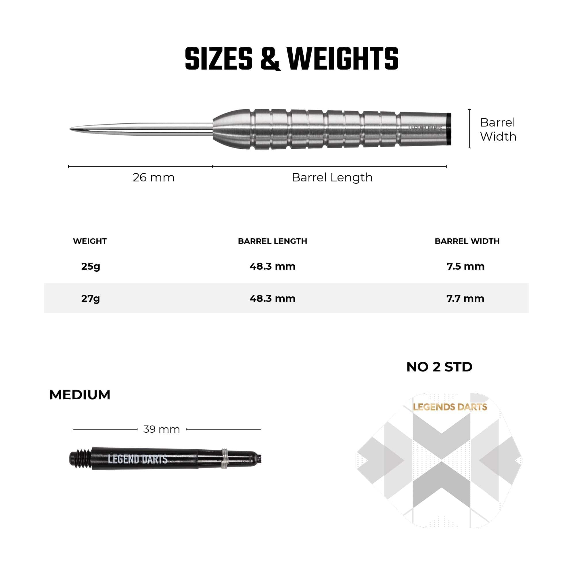 Legend Darts - Pro Series - Steel Tip 90% Tungsten Darts. Features: 90 Percent Tungsten Barrels, Dart Flights and Dart Shafts. Legend Darts - Steel Tip - 90% Tungsten - Pro Series - V7 - Torpedo