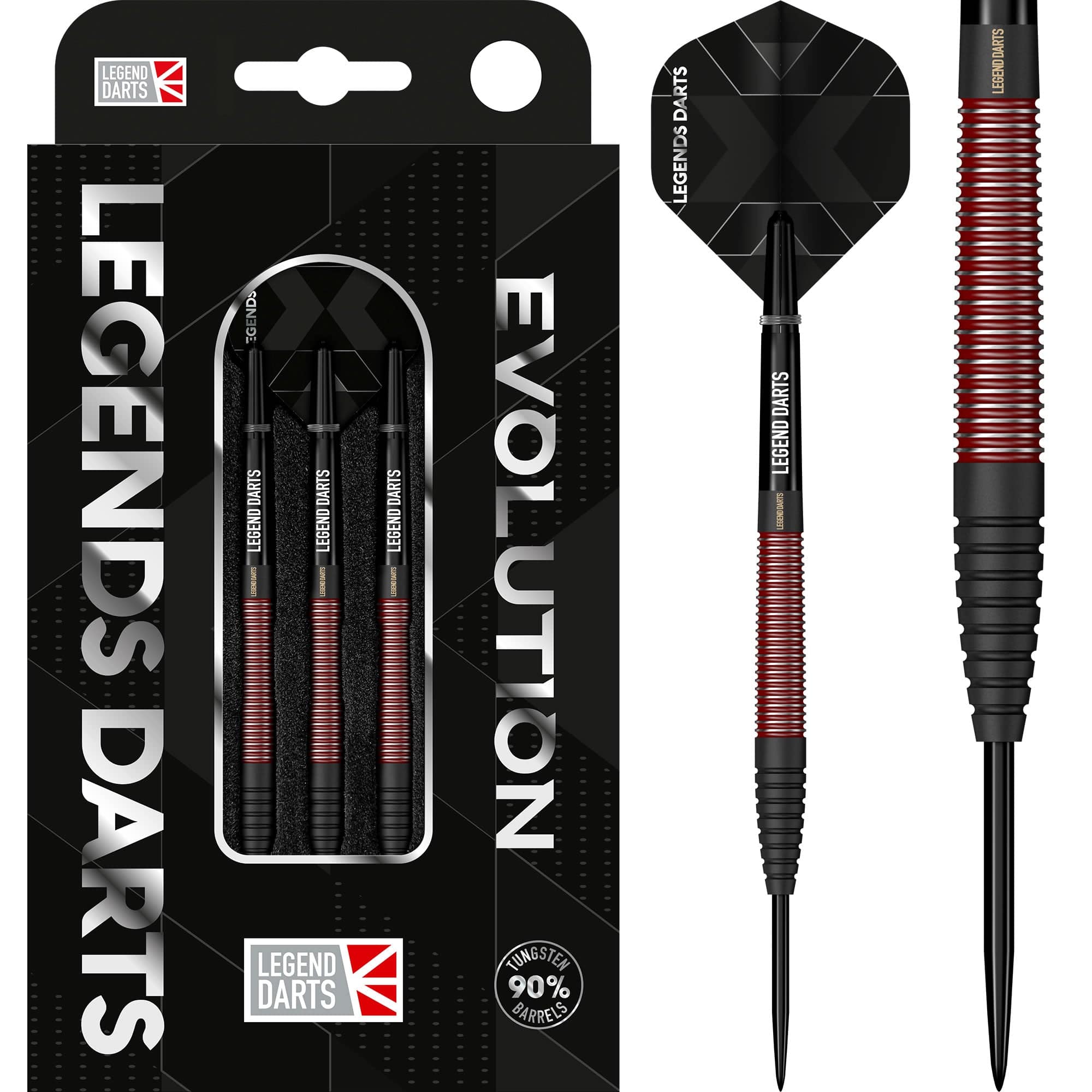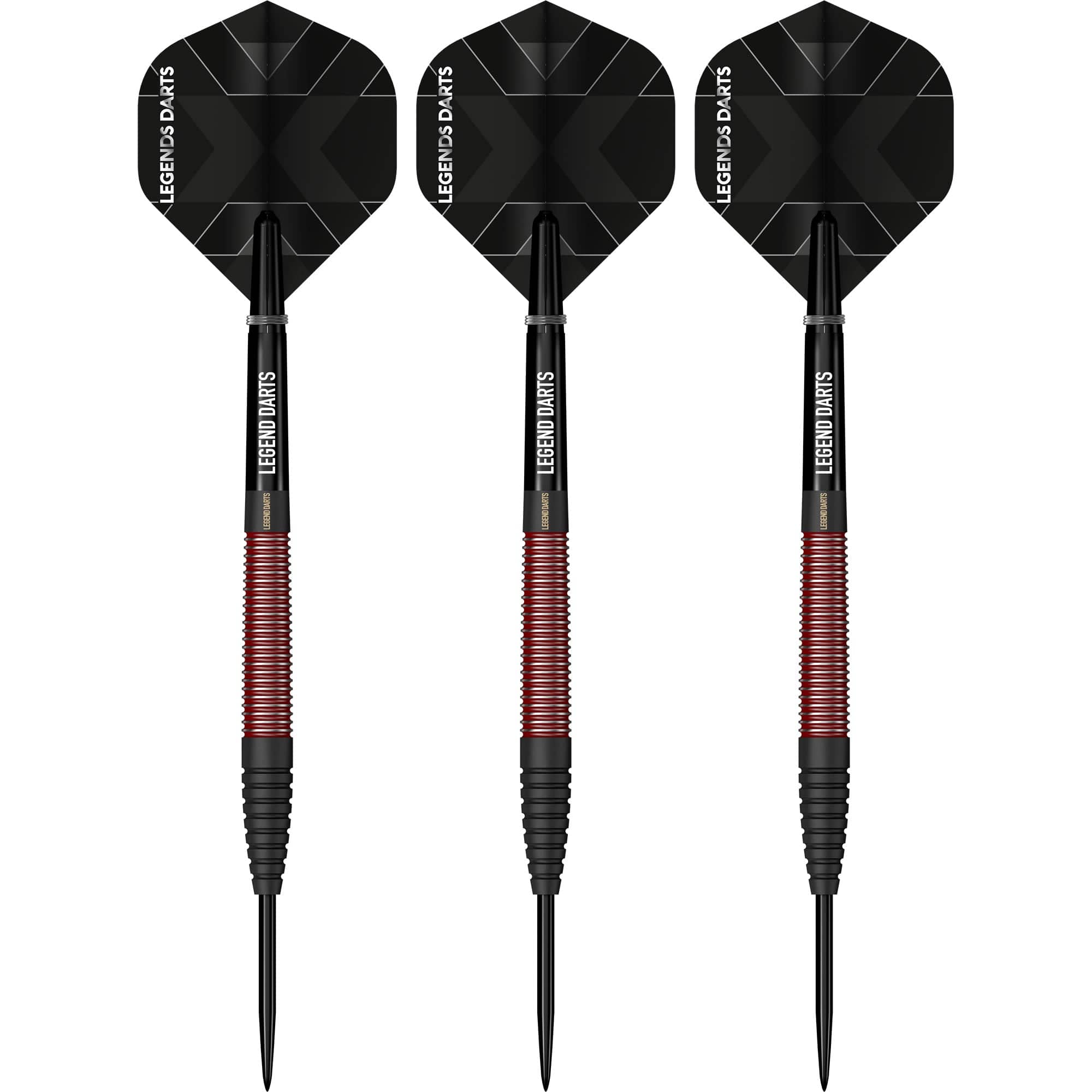 Legend Darts - Steel Tip - Evolution Plus Series - BC01 - Black & Red - Torpedo - 24g. Pack contains: 90% tungsten barrels, shafts and 100 micron flights.