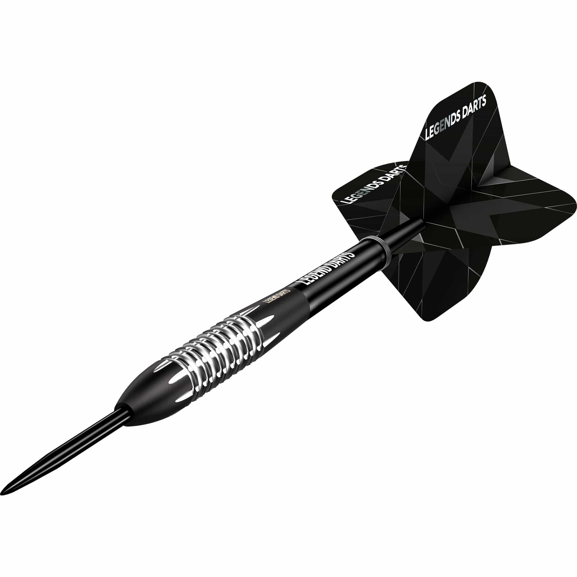Legend Darts - Steel Tip - Revolution Series - B03 - Black - Milled Bomb - 22g. This 90% Tungsten barrel from Legend Darts features a black titanium coating with its uniquely created barrel design, and comes complete with a set of Legend Flights and Shafts.