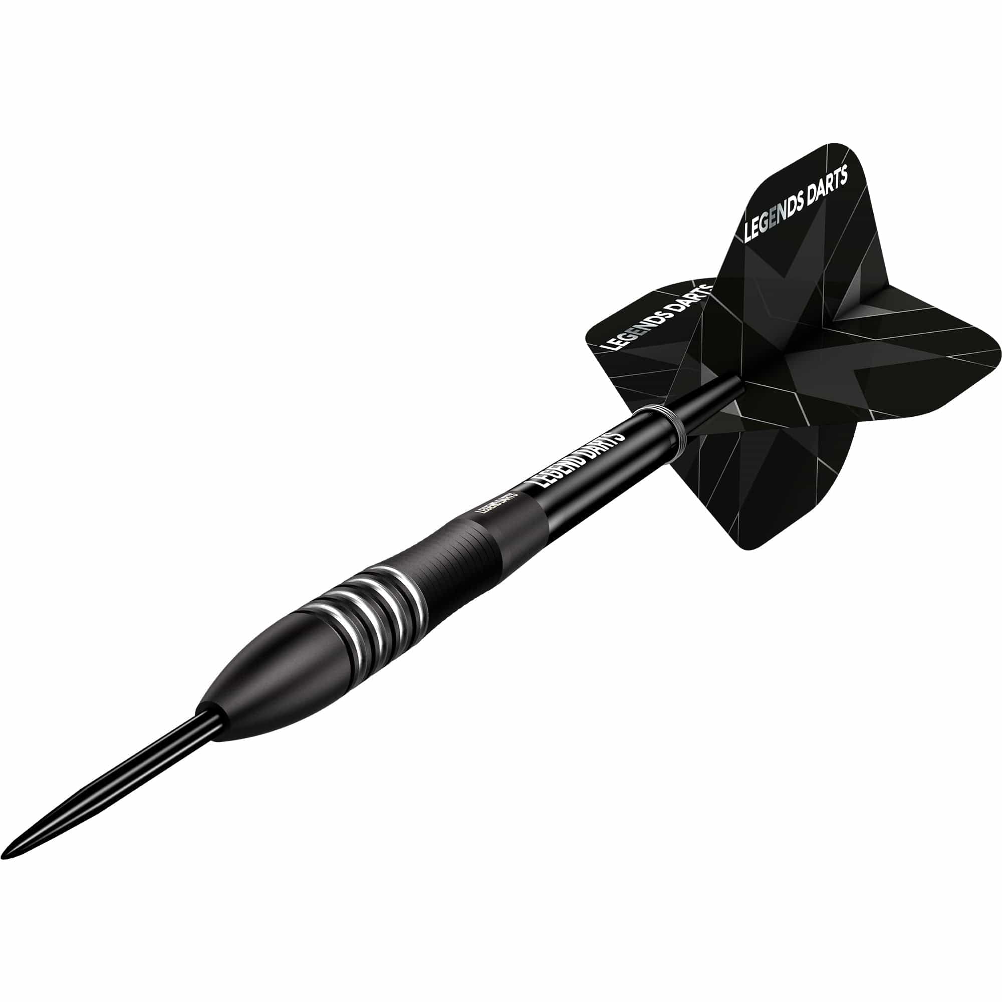 Legend Darts - Steel Tip - Revolution Series - B05 - Black - Bullet Shark - 24g. This 90% Tungsten barrel from Legend Darts features a black titanium coating with its uniquely created barrel design, and comes complete with a set of Legend Flights and Shafts.