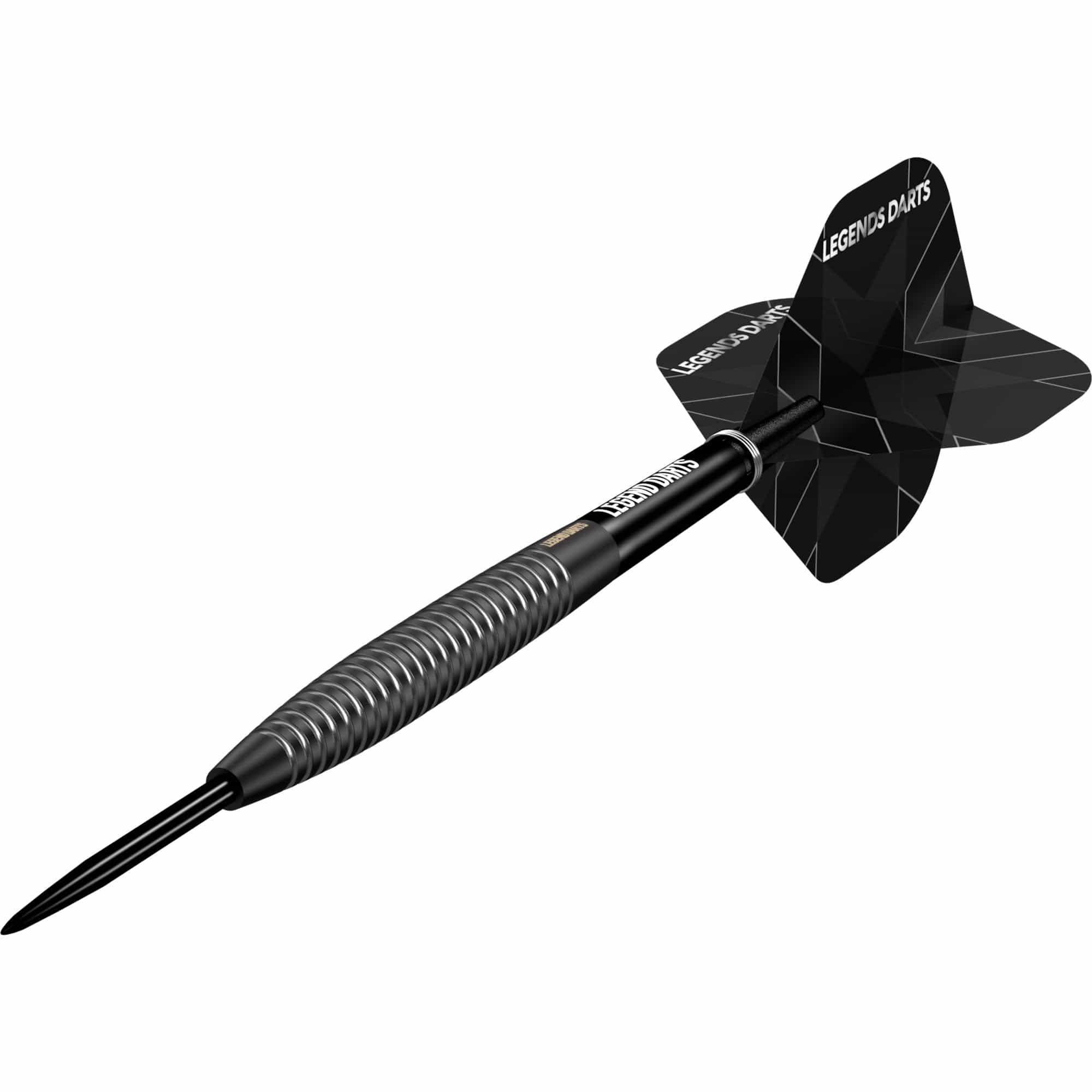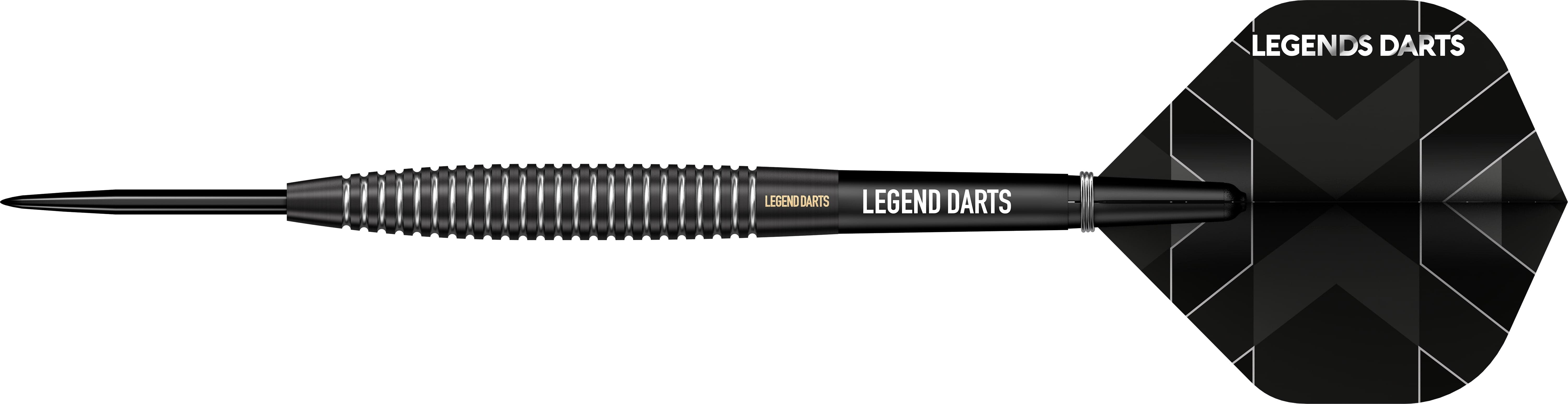 Legend Darts - Steel Tip - Revolution Series - B08 - Black - Torpedo Ring - 21g. This 90% Tungsten barrel from Legend Darts features a black titanium coating with its uniquely created barrel design from the Revolution Series, and comes complete with a set of Legend Flights and Shafts.