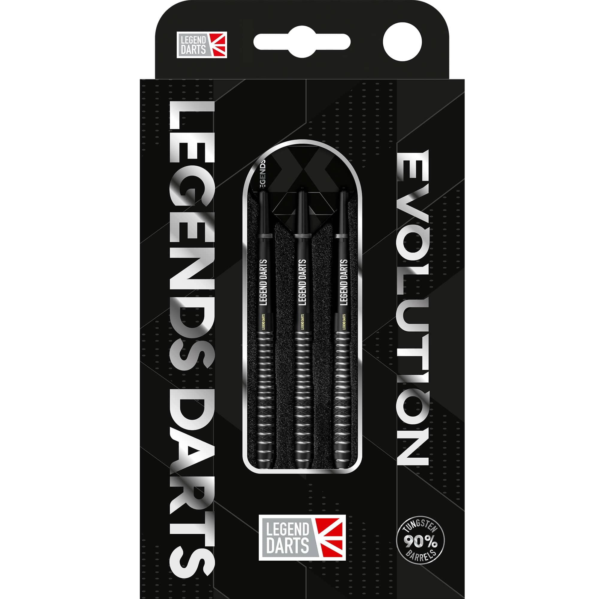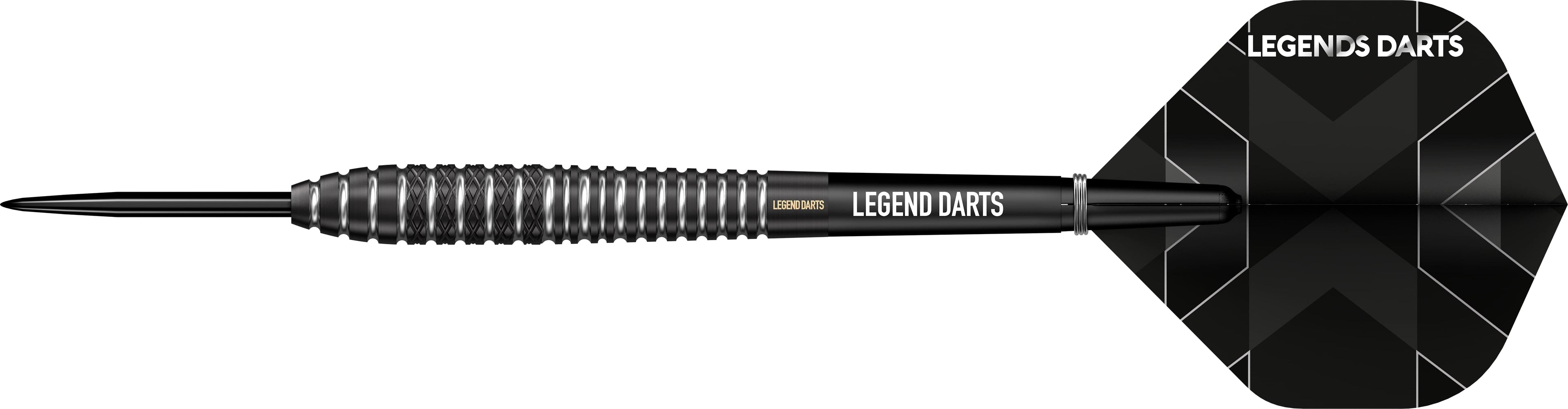 Legend Darts - Steel Tip - Revolution Series - B12 - Black - Torpedo Mix - 24g. This 90% Tungsten barrel from Legend Darts features a black titanium coating with its uniquely created barrel design from the Revolution Series, and comes complete with a set of Legend Flights and Shafts.