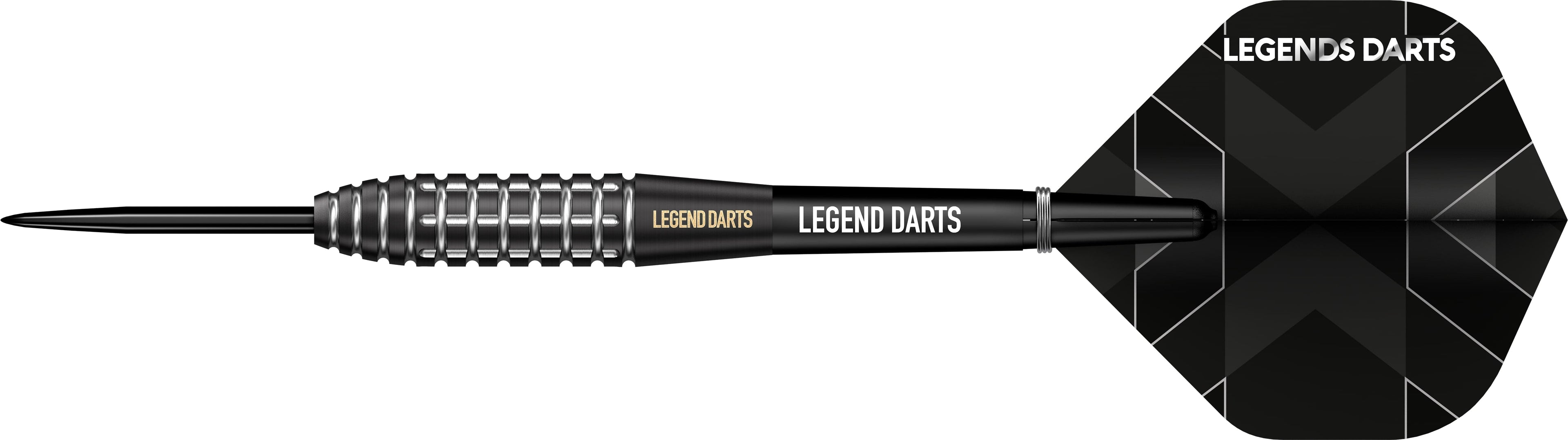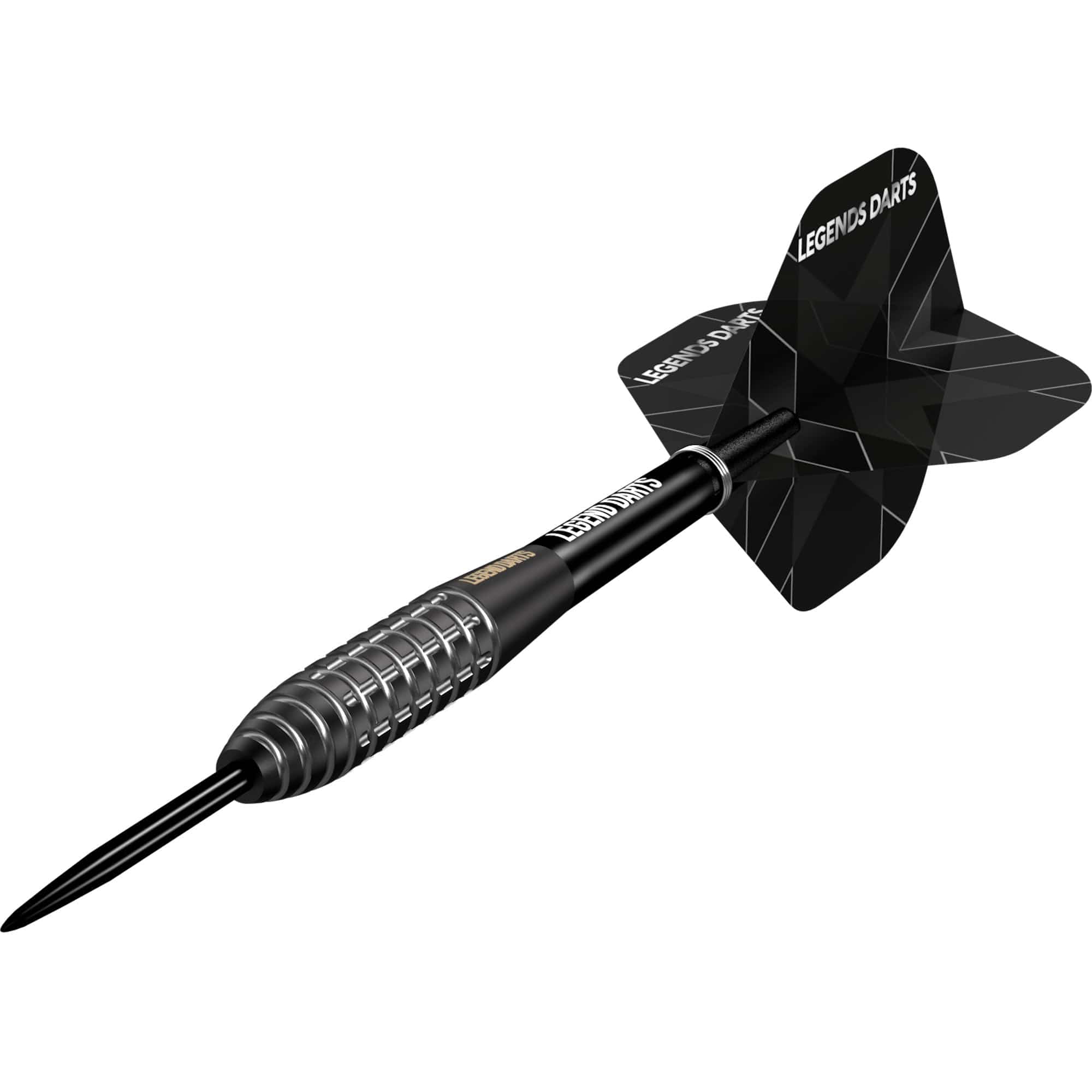 Legend Darts - Steel Tip - Revolution Series - B13 - Black - Grenade Bomb - 22g. This 90% Tungsten barrel from Legend Darts features a black titanium coating with its uniquely created barrel design from the Revolution Series, and comes complete with a set of Legend Flights and Shafts.
