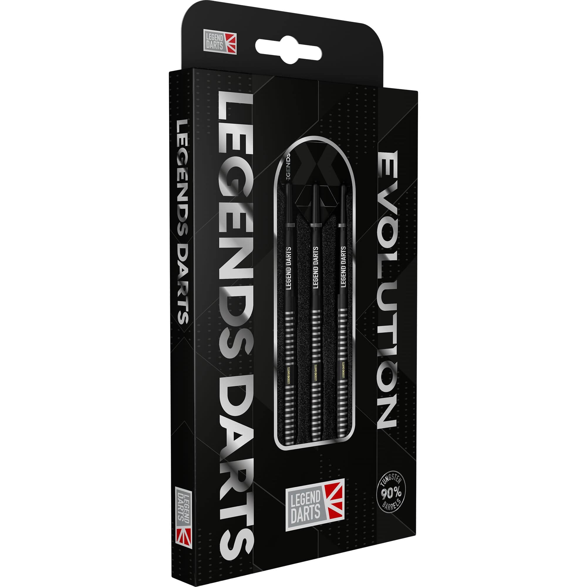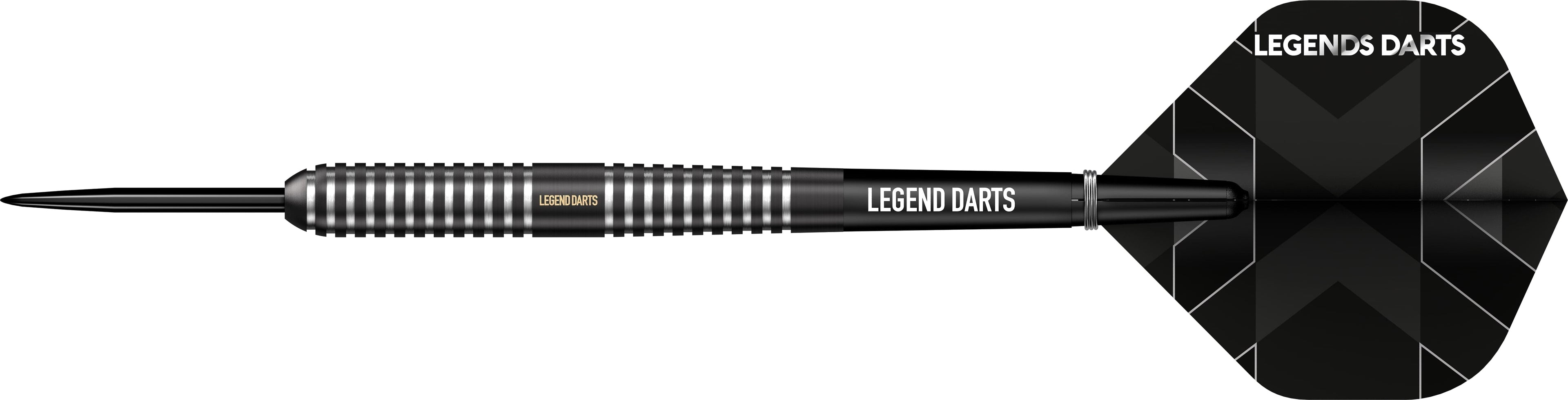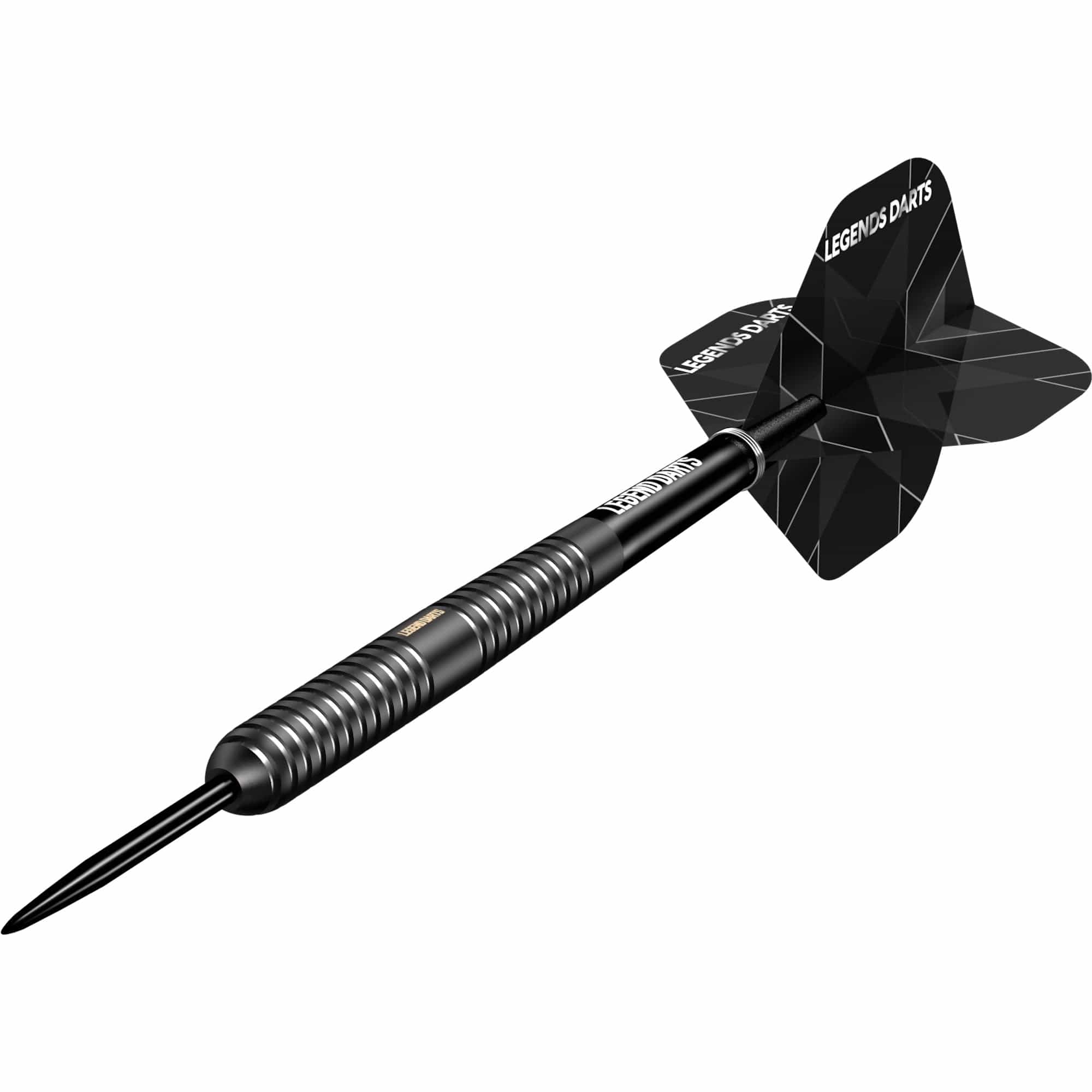 Legend Darts - Steel Tip - Revolution Series - B14 - Black - Rear Taper - 23g. This 90% Tungsten barrel from Legend Darts features a black titanium coating with its uniquely created barrel design from the Revolution Series, and comes complete with a set of Legend Flights and Shafts.