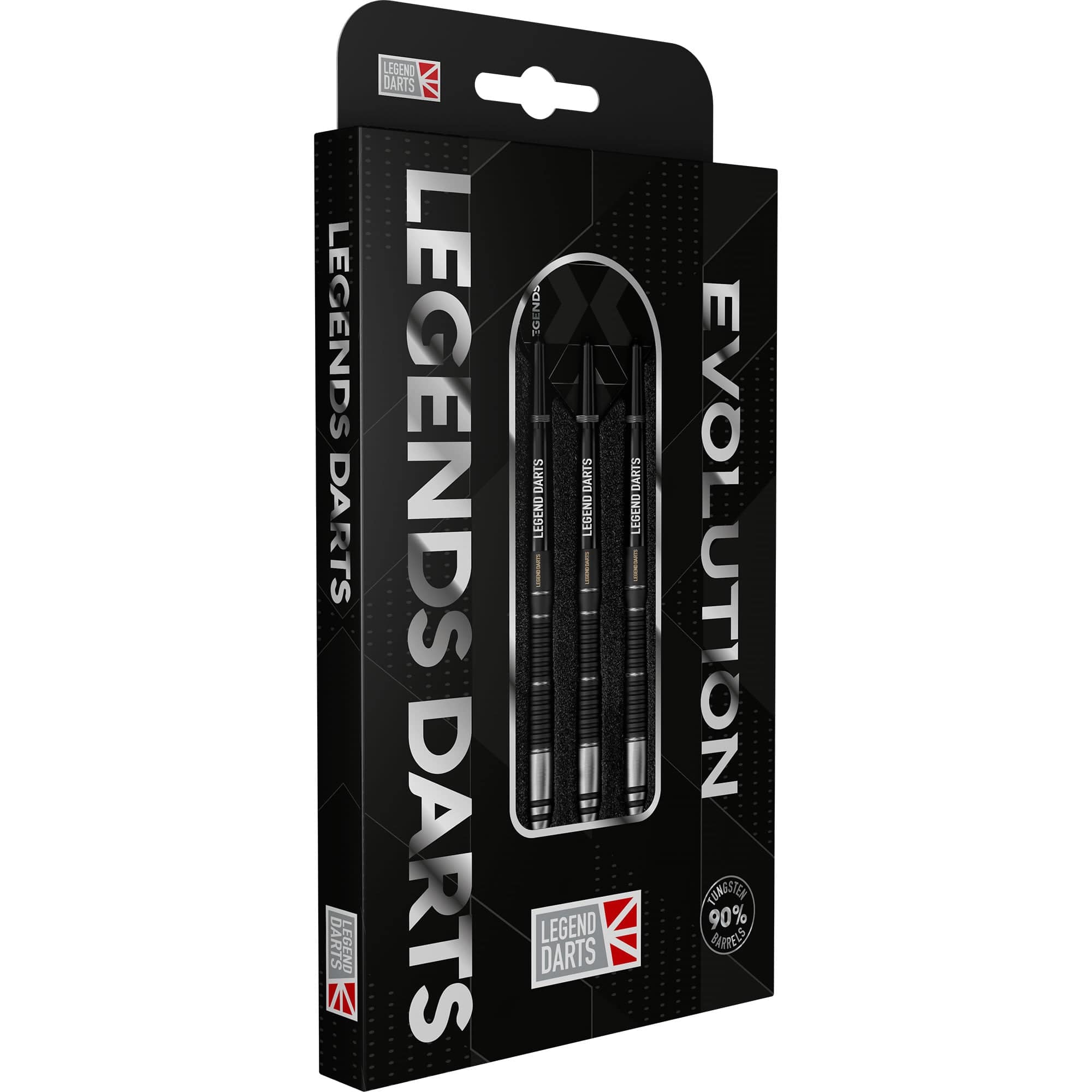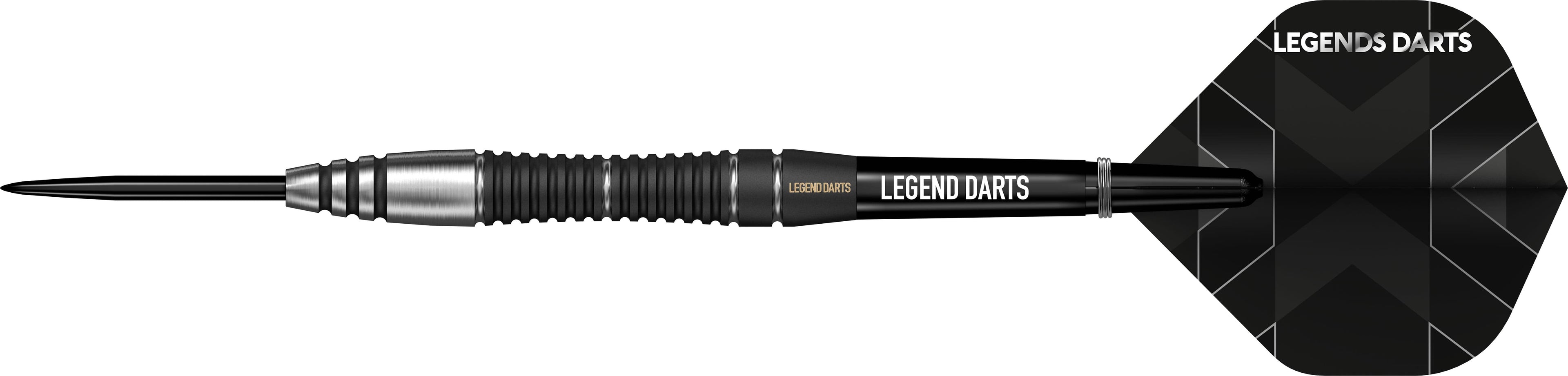Legend Darts - Steel Tip - Revolution Series - B17 - Black - Scallop - 24g. Pack contains: 90% tungsten barrels, shafts and 100 micron flights.