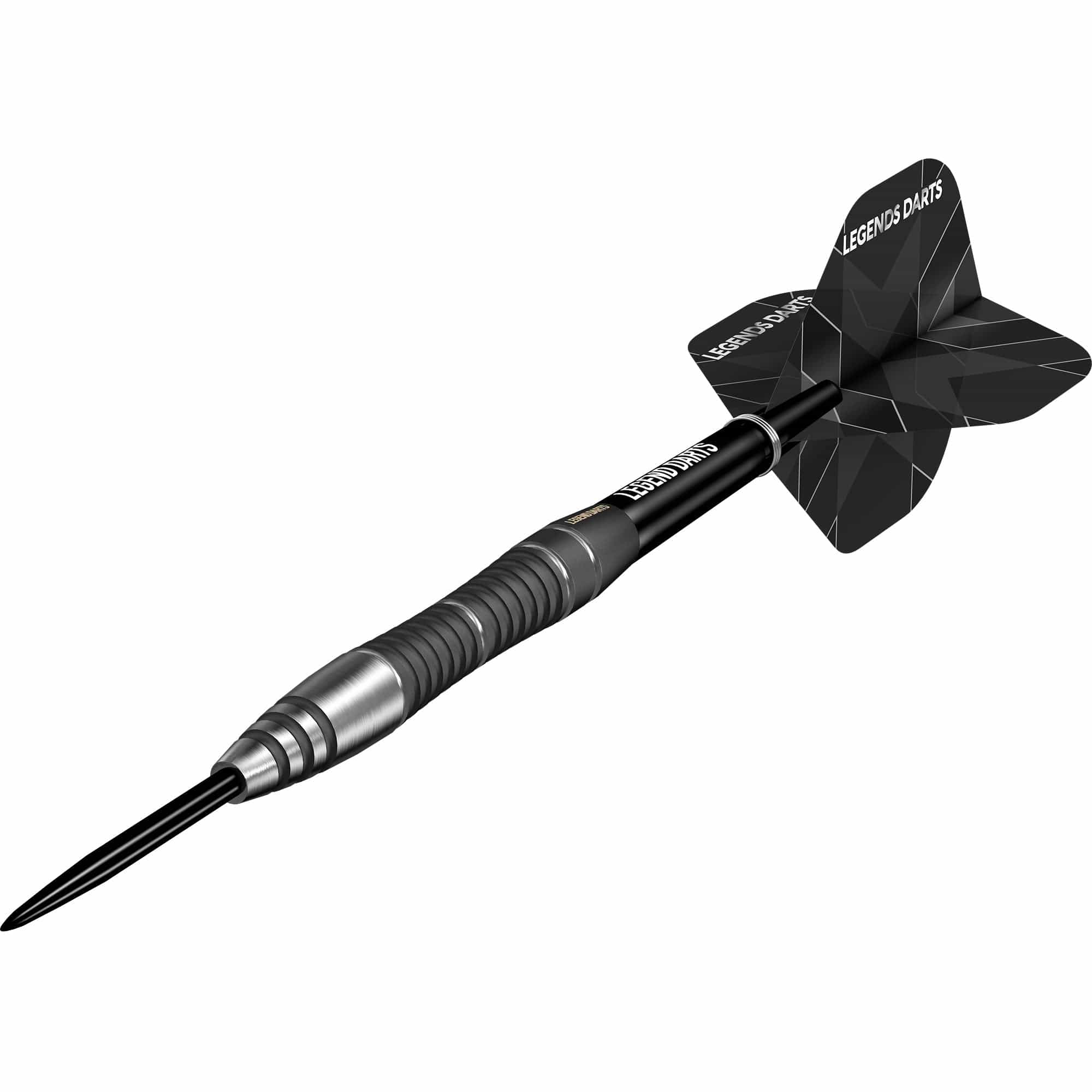 Legend Darts - Steel Tip - Revolution Series - B17 - Black - Scallop - 22g. Pack contains: 90% tungsten barrels, shafts and 100 micron flights.