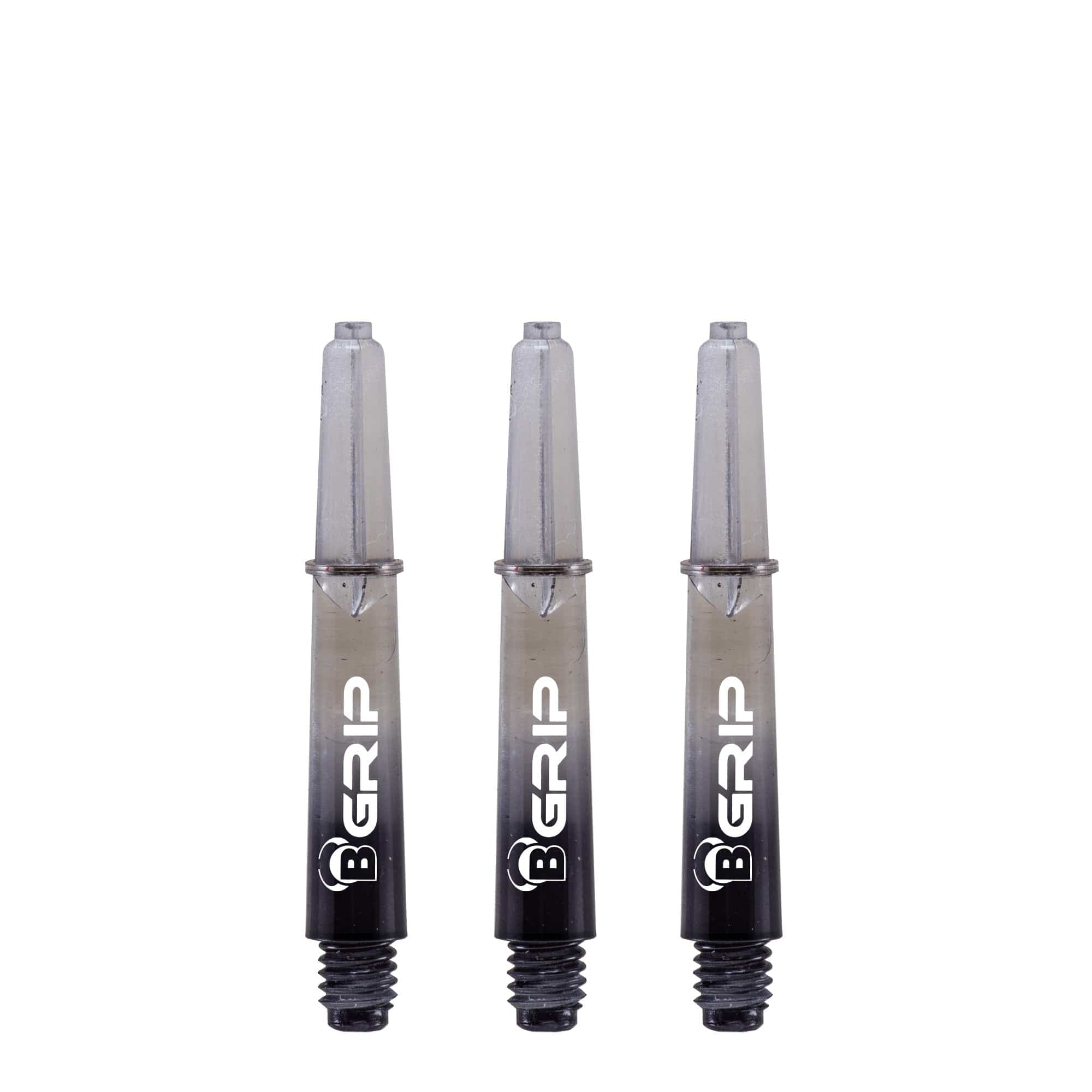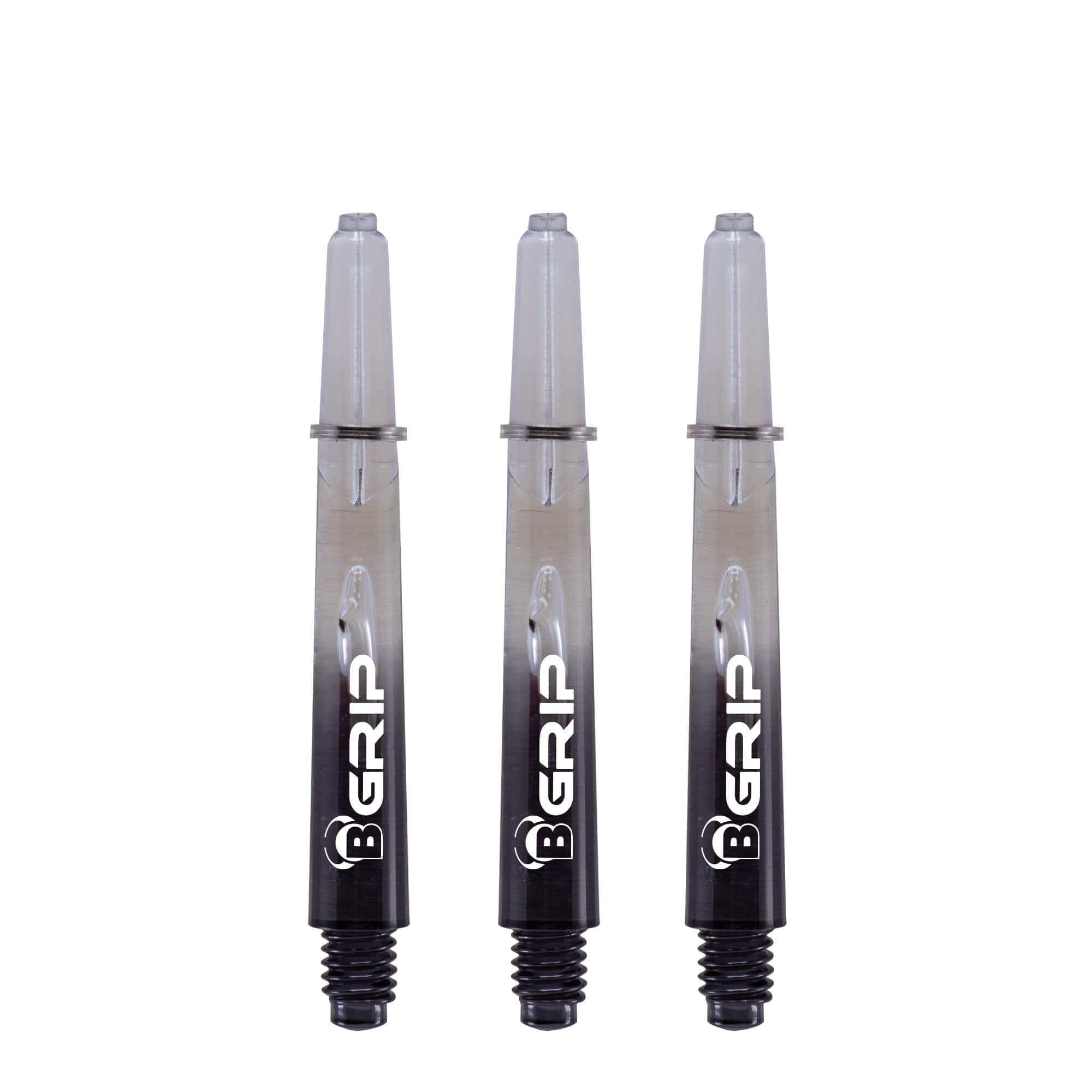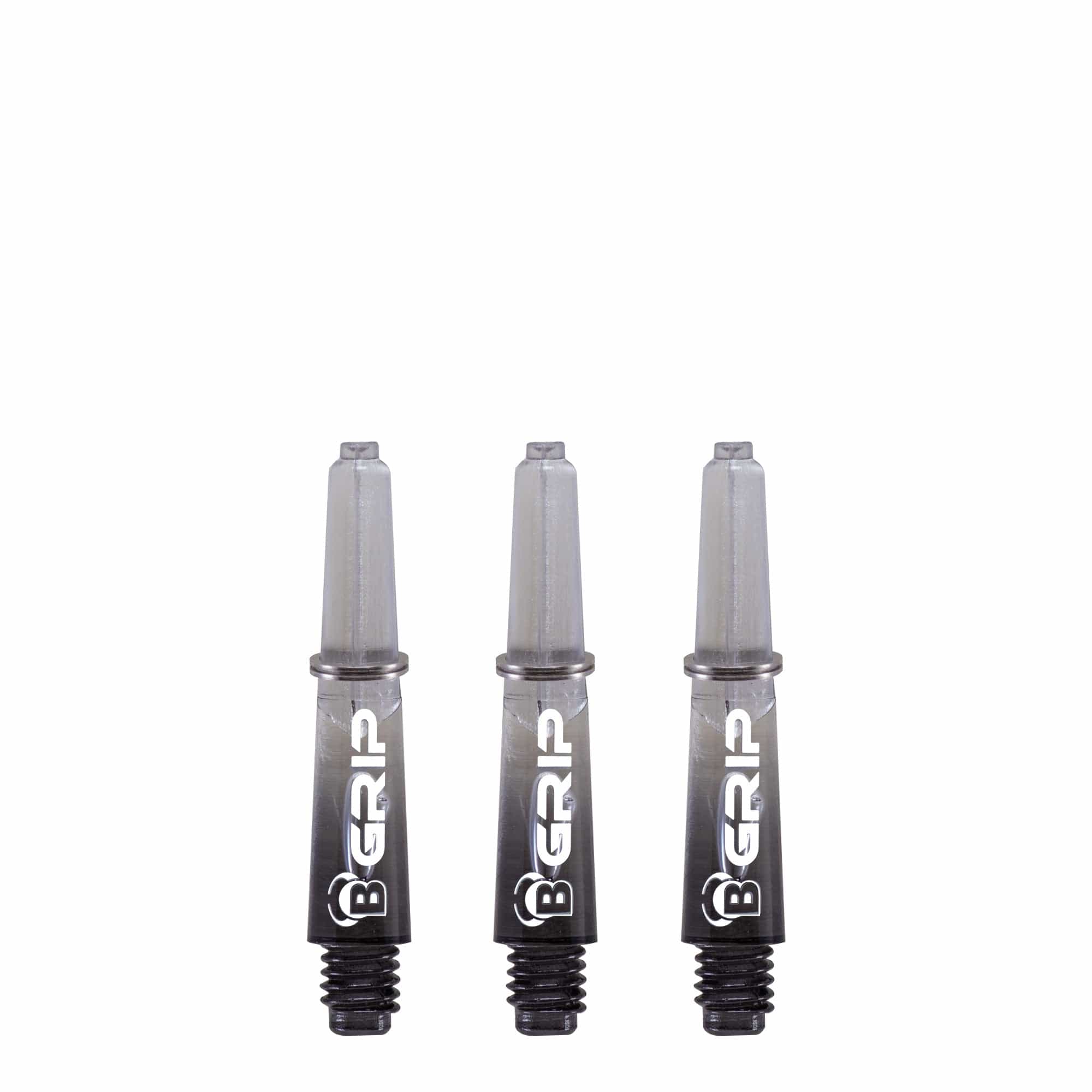 BULL'S B-Grip TT Shaft - Polycarbonate - Clear & Black - Extra Short. Made from a polycarbonate material, this stem is provided with a locking ring to help keep your flight on the stem. Length: 28mm (not including the thread - 5mm) Thread size: 2ba