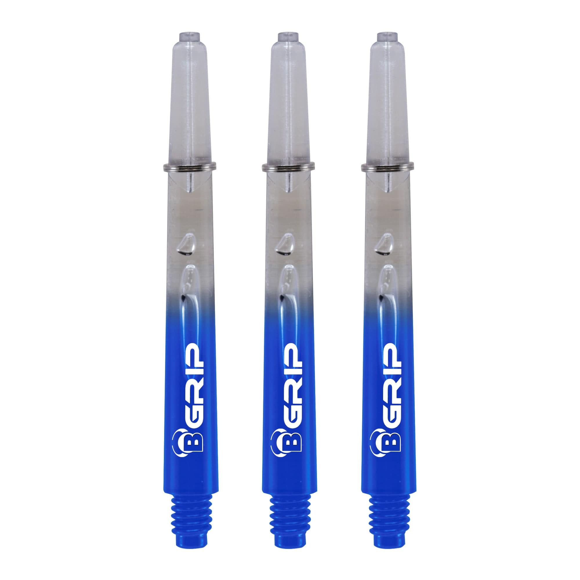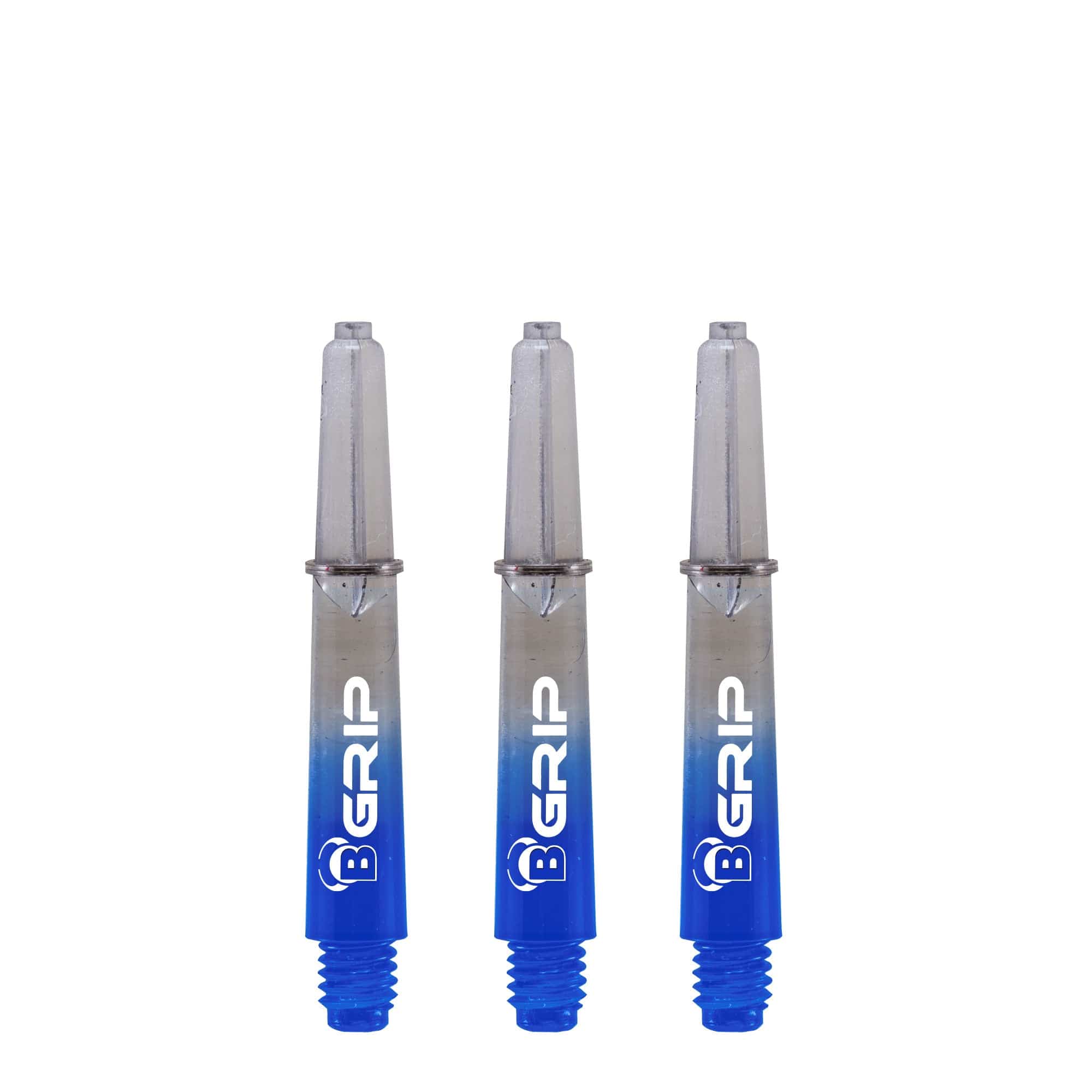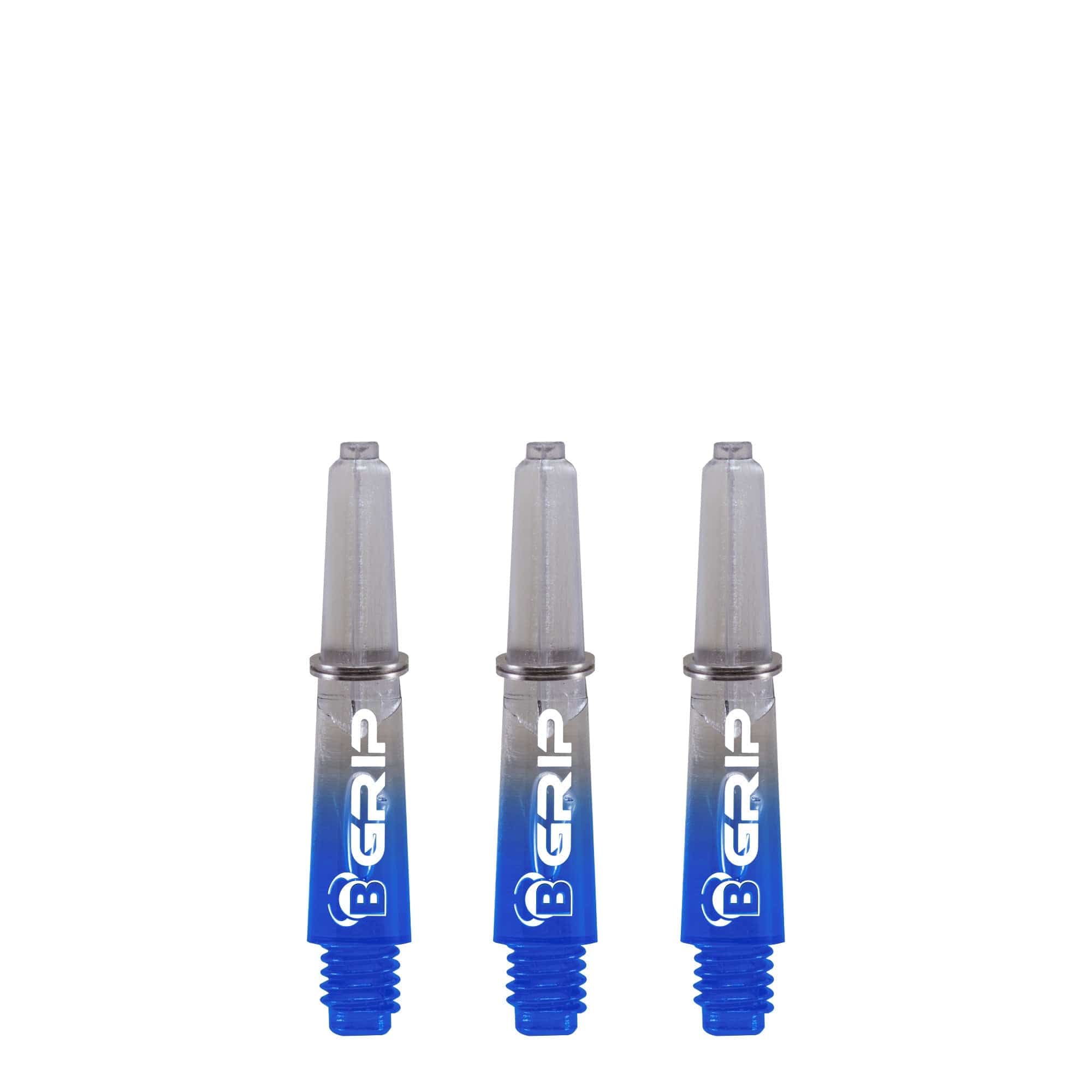 BULL'S B-Grip TT Shaft - Polycarbonate - Clear & Blue - Extra Short. Made from a polycarbonate material, this stem is provided with a locking ring to help keep your flight on the stem. Length: 28mm (not including the thread - 5mm) Thread size: 2ba
