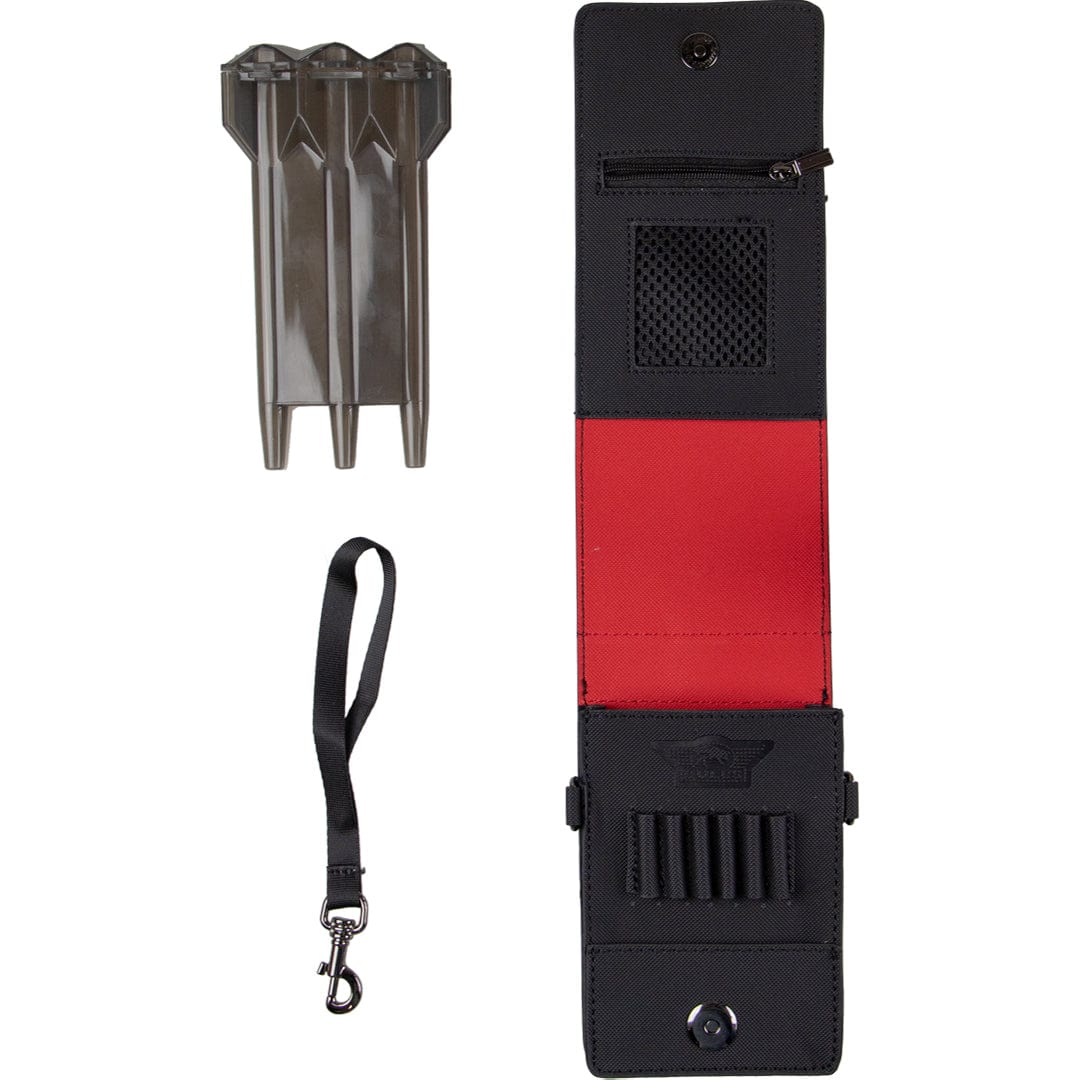 Bulls Space Case - Hard Shell Case - Black. Unleash the power of stellar organization with the new Bull's Space Case Dart Holder! Designed for darters who crave both style and functionality, this cutting-edge dart case will transport your gear into a new dimension of protection and convenience. Crafted from high-quality, impact resistant materials, the Bull's Space Case ensures your darts and accessories remain safe during transport, no matter how bumpy the ride gets. This case is made from harder material giving it more sturdiness. Featuring a sleek, modern black exterior with a cosmic design, this case is as stylish as it is functional. The strong magnetic locking system will prevent your darts falling out but gives it a simplistic look. This comes with a closable dart quiver that will hold a fully completed darts set. It will also hold the popular moulded flights and Robson flights. The case also has multiple compartments to store your flights, shaft, rings, steel points and more.