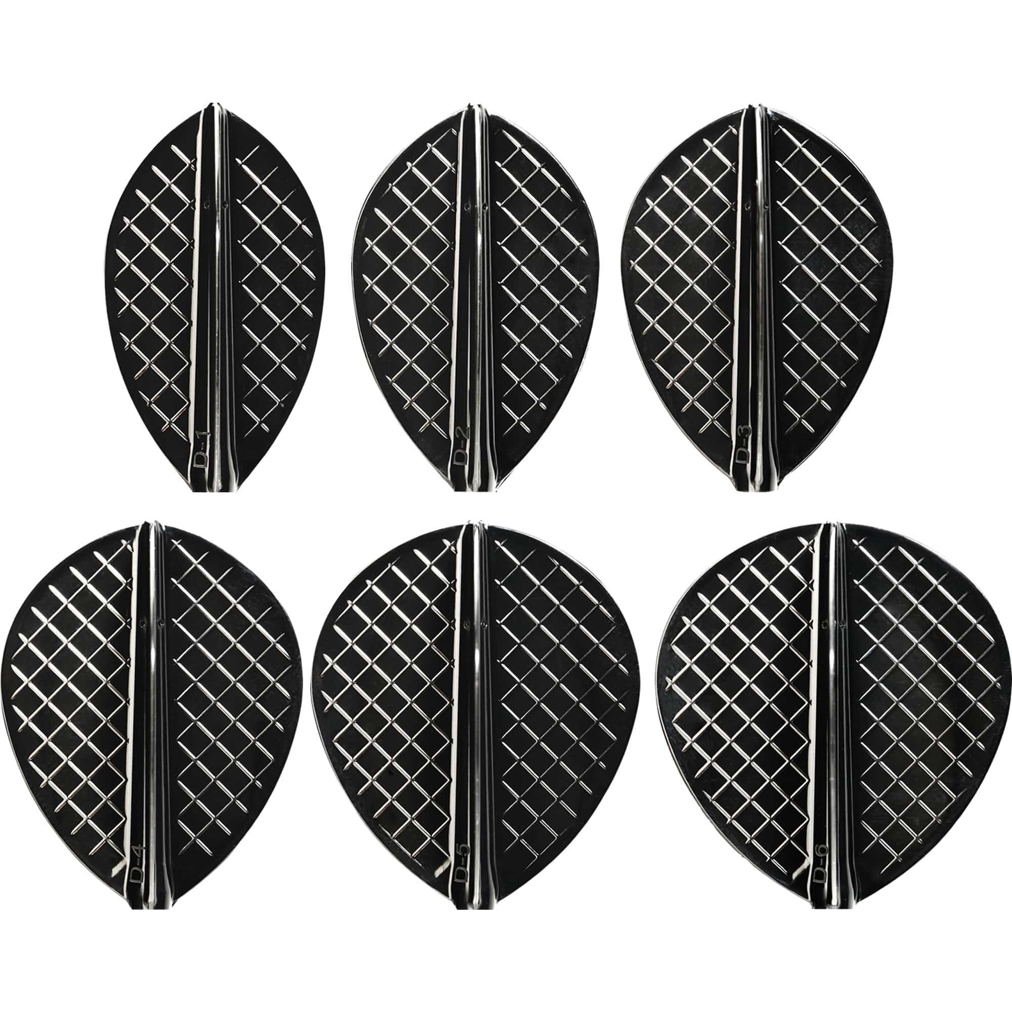 Cosmo Fit Flight Pro - D-Series - D-6 in black. The Fit Flight Pro is the most innovative Flight and Shaft System. Common Flight Shapes are installed by pushing the full flight system onto the shaft, creating a complete unit. These black D-Series flights are loosely based on a teardrop shape flight, in varying widths. Only to be used with Cosmo Fit Shafts.
