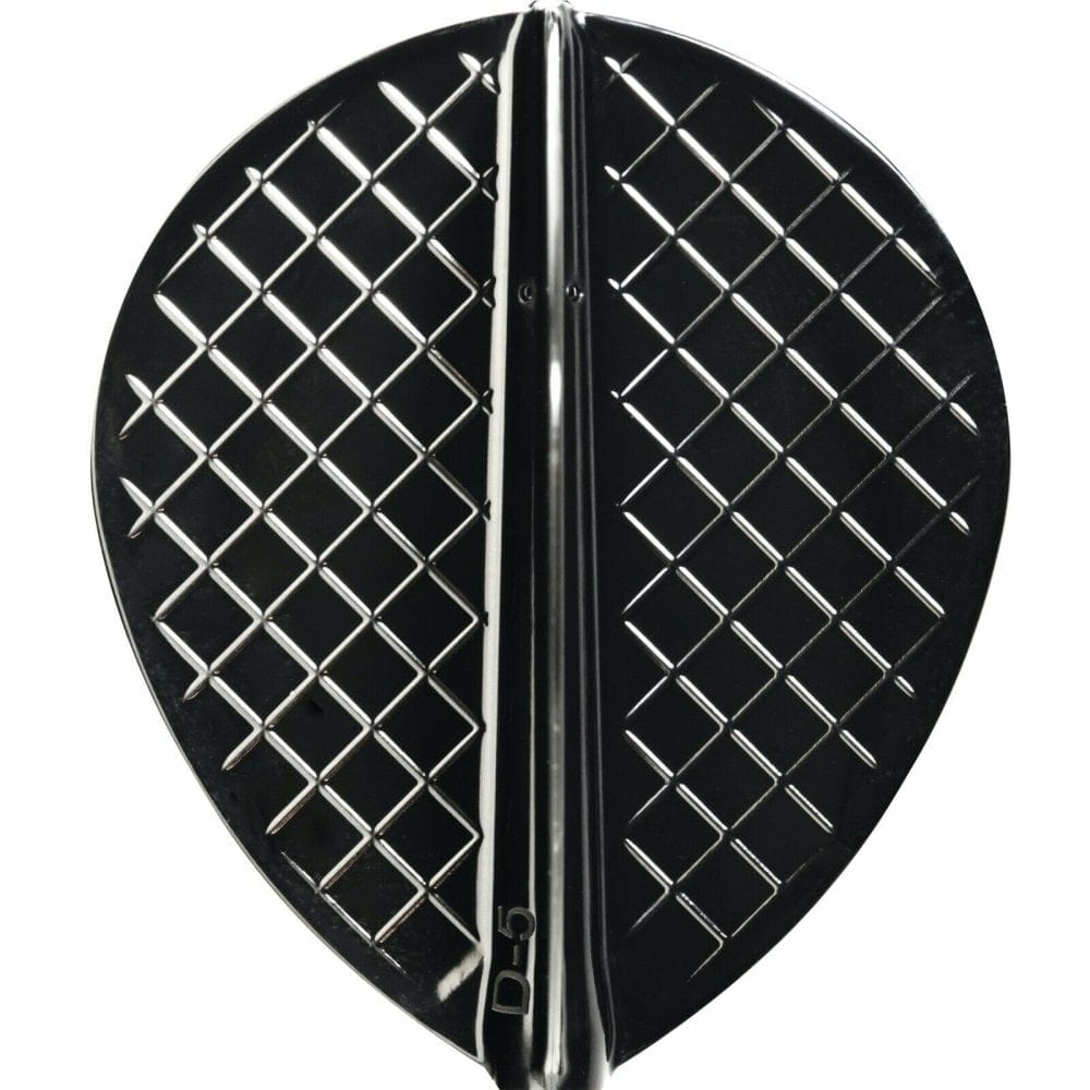 Cosmo Fit Flight Pro - D-Series - D-5 in black. The Fit Flight Pro is the most innovative Flight and Shaft System. Common Flight Shapes are installed by pushing the full flight system onto the shaft, creating a complete unit. These black D-Series flights are loosely based on a teardrop shape flight, in varying widths. Only to be used with Cosmo Fit Shafts.