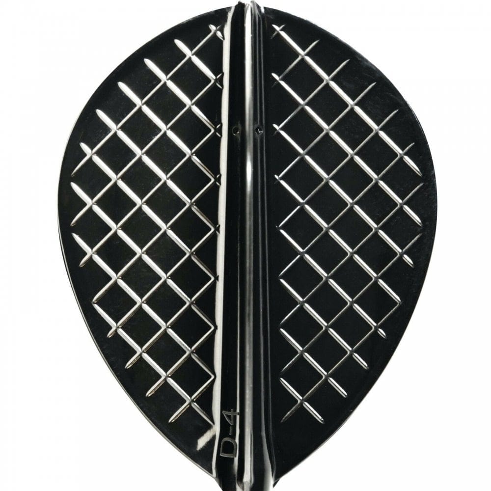 Cosmo Fit Flight Pro - D-Series - D-4 in black. The Fit Flight Pro is the most innovative Flight and Shaft System. Common Flight Shapes are installed by pushing the full flight system onto the shaft, creating a complete unit. These black D-Series flights are loosely based on a teardrop shape flight, in varying widths. Only to be used with Cosmo Fit Shafts.