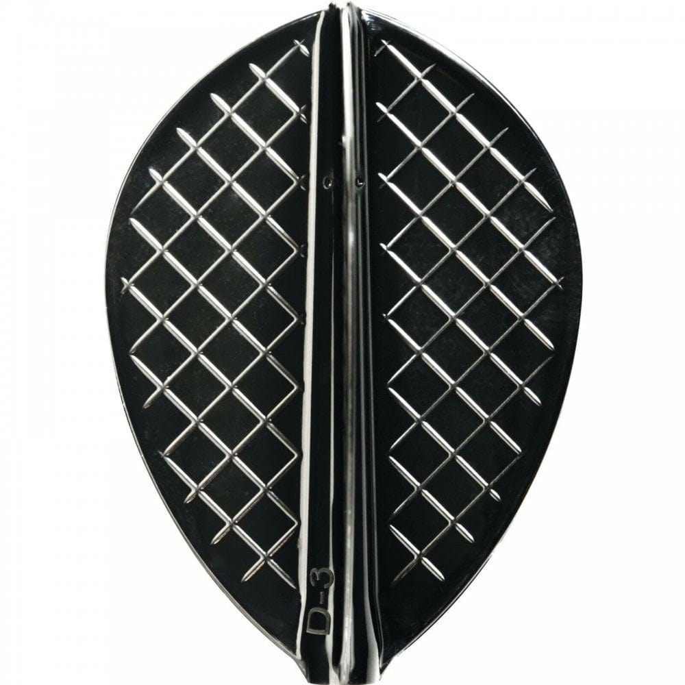 Cosmo Fit Flight Pro - D-Series - D-3 in black. The Fit Flight Pro is the most innovative Flight and Shaft System. Common Flight Shapes are installed by pushing the full flight system onto the shaft, creating a complete unit. These black D-Series flights are loosely based on a teardrop shape flight, in varying widths. Only to be used with Cosmo Fit Shafts.